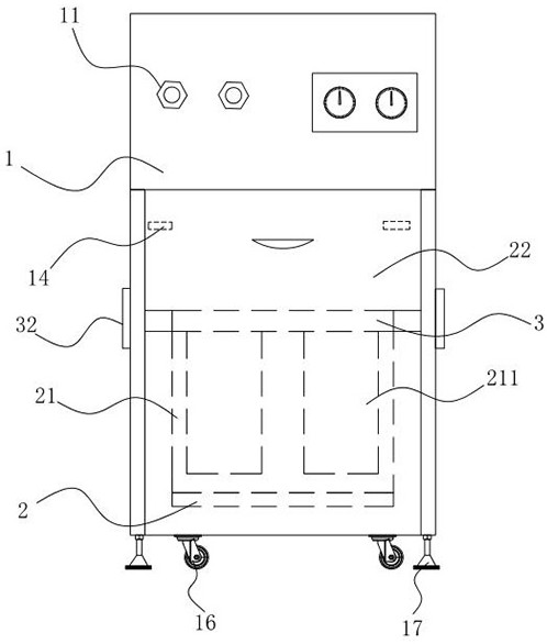 本实用新型公开了一种便于操作的防爆充气箱,涉及一种便于操作的防爆充气箱。解决了现有的防爆充气箱要么开关门较为不便,要么容易因为铰接处强度低或者防护不到位,导致安全性低的问题。包括箱体,箱体一侧开口,箱体内设有若干连接座,连接座上设有若干用于放置气瓶的充气座,箱体上设有与充气座对应的充气接口,各充气接口连通于伸入箱体内、用于对气瓶充气的充气管;连接座朝向箱体开口方向滑移连接于箱体内,连接座外侧还连接有挡设于箱体开口处的侧板,箱体上还设有固定侧板挡设于箱体开口位置的固定件。达到了在便于放入充气瓶的同时,提高使用时安全性的效果。