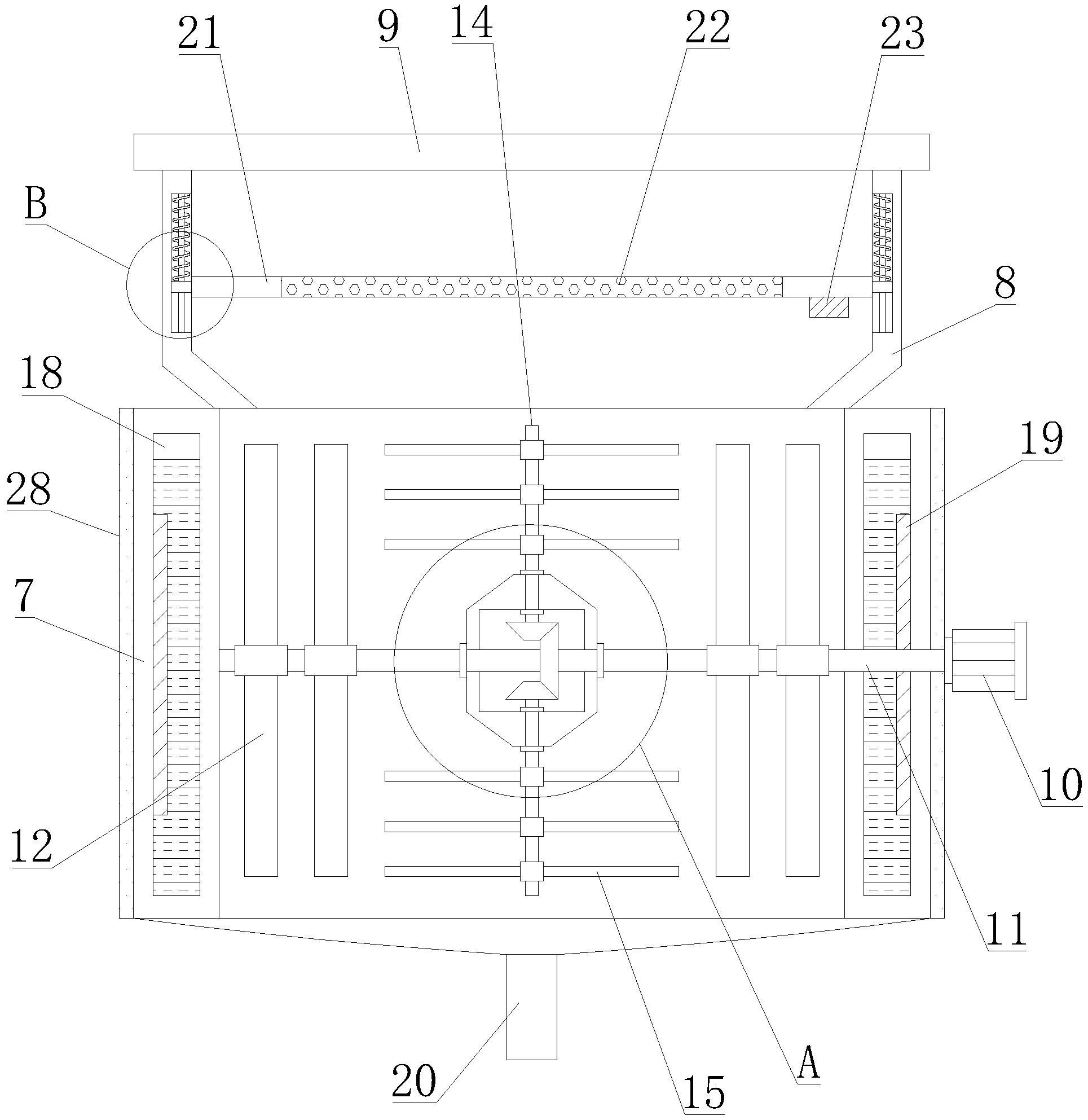 一种安全帽全自动生产线,包括原料混合设备、注塑成型设备、修边设备、喷漆设备、烘干设备和包装设备;其中,原料混合设备包括混合设备壳体、进料斗、盖板、驱动装置、第一转动件、固定件、加热装置、活动板、导向杆和弹性件;混合设备壳体上设有加热腔,底部设有出料管;加热腔内盛有导热液,加热装置设置于加热腔内;第一转动件设置于混合设备壳体内并穿过固定件,且驱动装置的输出端与第一转动件连接;第二转动件与固定件转动连接,且第一转动件与第二转动件传动连接;第一转动件上设置翻料件,第二转动件上设置搅拌件。本实用新型能够将原料混合均匀,显著提高了混合效率和混合效果,而且还具有筛选和预热的功能,功能多样,具有实用性。