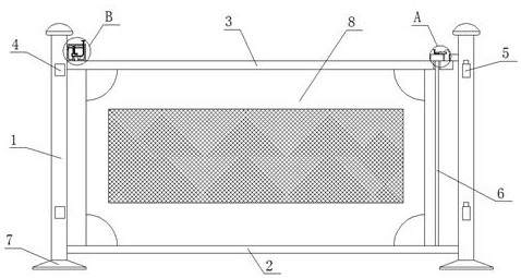 本实用新型属于儿童围栏技术领域,尤其是一种可收合益智儿童围栏,针对现有技术中的儿童围栏稳定性较差,容易发生倾斜,对儿童保护效果差,有可能给儿童造成伤害,另外拼接起来较为麻烦,收合不方便,费时费力的问题,现提出如下方案,其包括两个支撑杆,两个所述支撑杆的底端均固定连接有吸盘,两个支撑杆之间固定连接有同一个下横撑,位于左侧的支撑杆的前侧固定连接有两个连接套,位于右侧的支撑杆的前侧固定连接有两个连接销,下横撑的顶部固定连接有滑杆,滑杆上滑动连接有上横撑,本实用新型通过简单的结构实现了对四个儿童围栏的拼接和上横撑的拆卸操作,同时稳定性较高,拆装方便快捷,省时省力,实用性强。