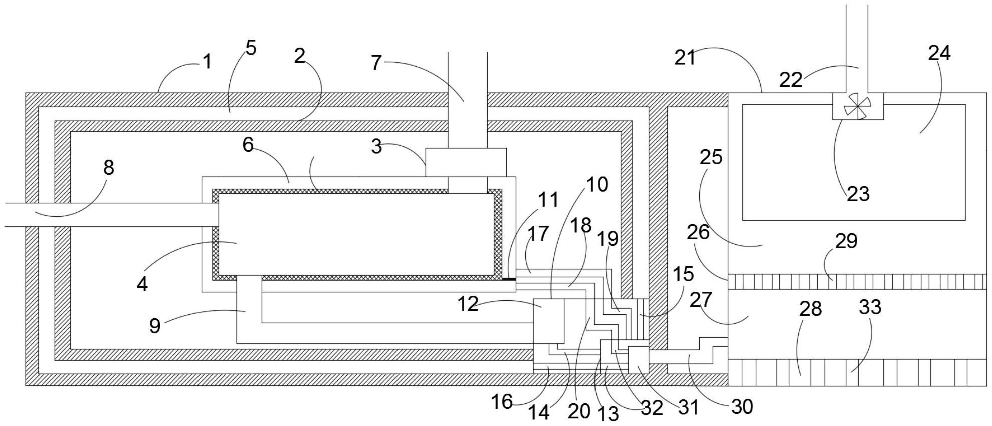 本实用新型提供一种新型除湿机,包括除湿机外壳、除湿机内壳、抽风机、除湿组件、第一降温层、第二降温层、进风管、出风管、冷凝水管、降温出水管、降温回水管和循环水泵装置,所述冷凝水管与所述循环水泵装置连接,所述循环水泵装置通过所述降温出水管和所述降温回水管与所述第一降温层和所述第二降温层连接;所述除湿机外壳与所述除湿机内壳之间形成所述第一降温层,所述除湿组件的外壳体设置有所述第二降温层。本实用新型解决了除湿机在运行的过程中,其除湿组件会在机箱内产生较多的热量,在除湿组件经过长时间运行后,压缩机和热交换器内流转的冷媒受机箱内温度的影响,导致除湿机整体除湿效果下降,而且冷凝水得不到很好地利用的问题。