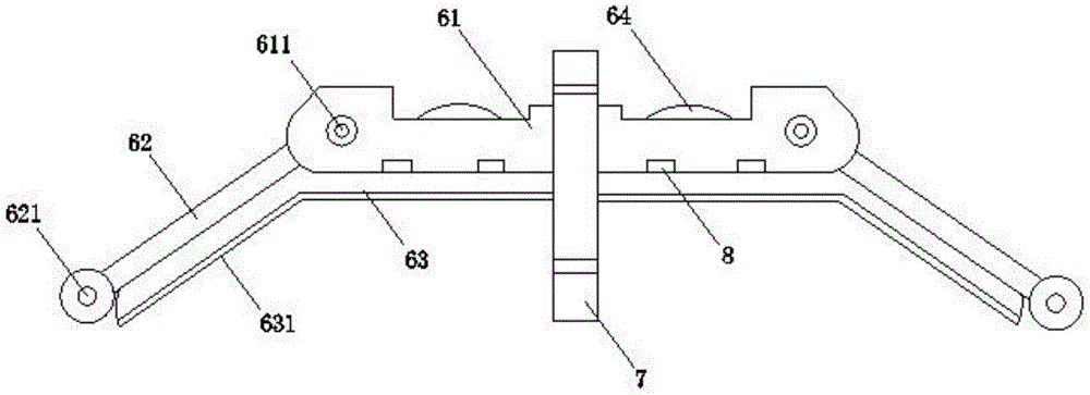 本实用新型公开了一种牲畜圈舍刮粪机,包括动力传动装置和刮粪装置,动力传动装置由驱动电机、驱动轮、牵引链条和导向轮组成,刮粪装置由刮板体、侧刮板、活动刮刀、和滚轮组成。本实用新型的牲畜圈舍刮粪机,通过设置的防撞轮,有效的解决了传统刮粪机只能在单一的直线圈舍内的往返循环工作;经由牵引链条带动刮粪装置在圈舍通过等距的分布在牲畜圈舍的平台上的导向轮,使得刮粪装置无需人工搬运环线,即可完成对牲畜圈舍整体的清理工作,清理效率更高,省时省力。