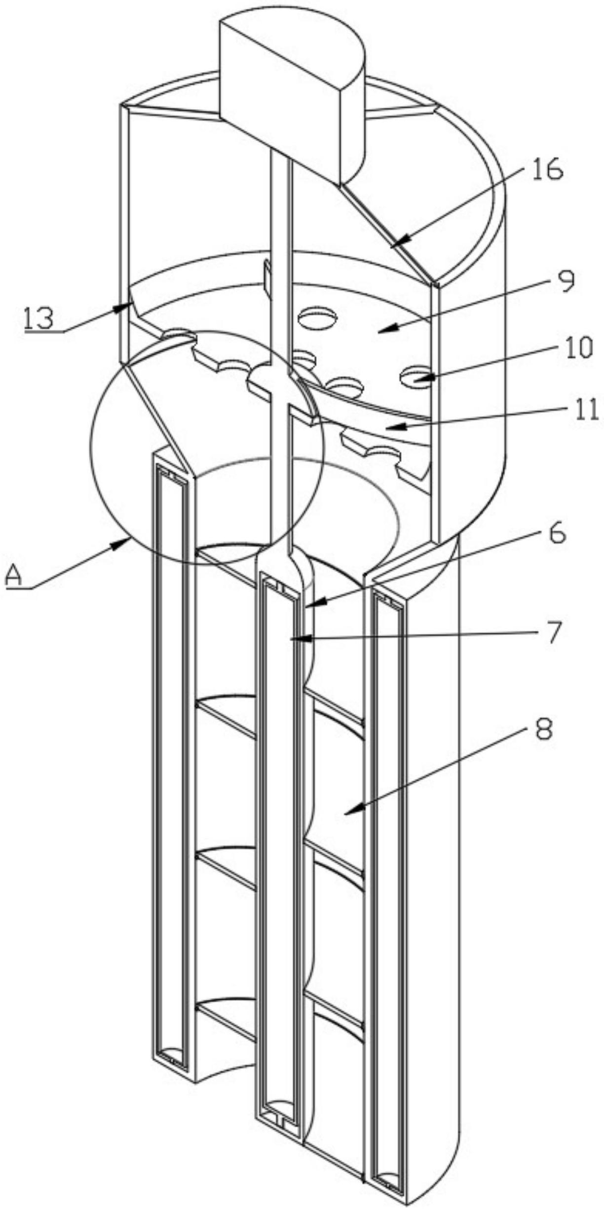 本实用新型公开了香辛料颗粒瞬时杀菌装置,包括储料管及用于香辛料杀菌的杀菌部件,所述杀菌部件包括设于储料管一端运输管、多个设于运输管内的第一灯管、设于储料管另一端的电机、设于电机一侧的转杆、设于转杆一端的灯罩、设于灯罩内的第二灯管、设于灯罩外侧的螺纹叶片及用于防止物料发生堵塞的防堵部件,本实用新型通过设置储料管、运输管、第一灯管、电机、转杆、灯罩、第二灯管、螺纹叶片和防堵部件,解决了现有的香辛料颗粒瞬时杀菌装置杀菌效果不好,且容易发生堵塞的问题。