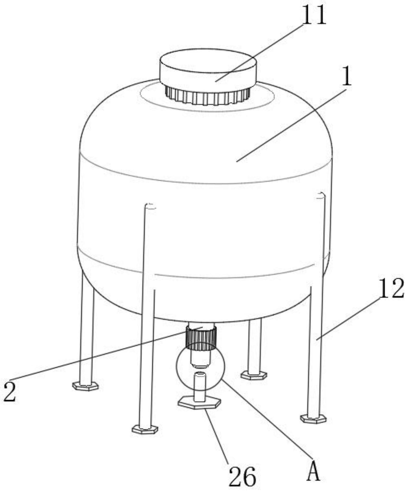 本实用新型公开了一种木本油料的油脂精炼提取装置,具体涉及油脂精炼技术领域,包括精炼罐,所述精炼罐底部固定连接有用于分段排放碱液和油料的控制组件,所述控制组件包括用于连接滑动管的第一连接管,所述第一连接管顶部与精炼罐固定连接,本实用新型中设置有控制组件,第一连接管底部固定连接有用于安装浮块的滑动管,滑动管底部固定连接有用于配合自身固定浮块的第二连接管,浮块底部固定连接有用于碱液和油料排出的出料管,浮块中部开设有便于油料排出的连通孔,出料管与第二连接管管壁滑动连接,出料管底部设置有用于封闭自己的塞柱,本装置可以将碱液和毛油分段排出,保证在排出碱液的时候不会浪费油,提高了成品效率,节省成本。