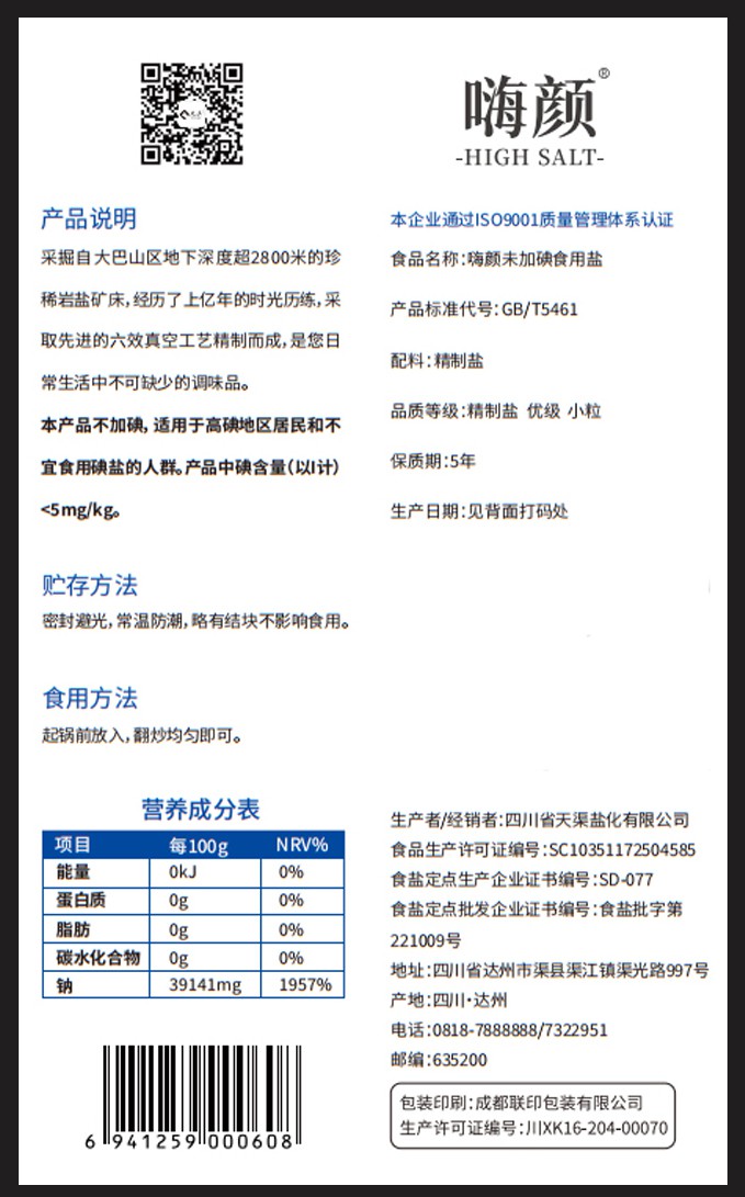 包装袋(未加碘食用盐)
