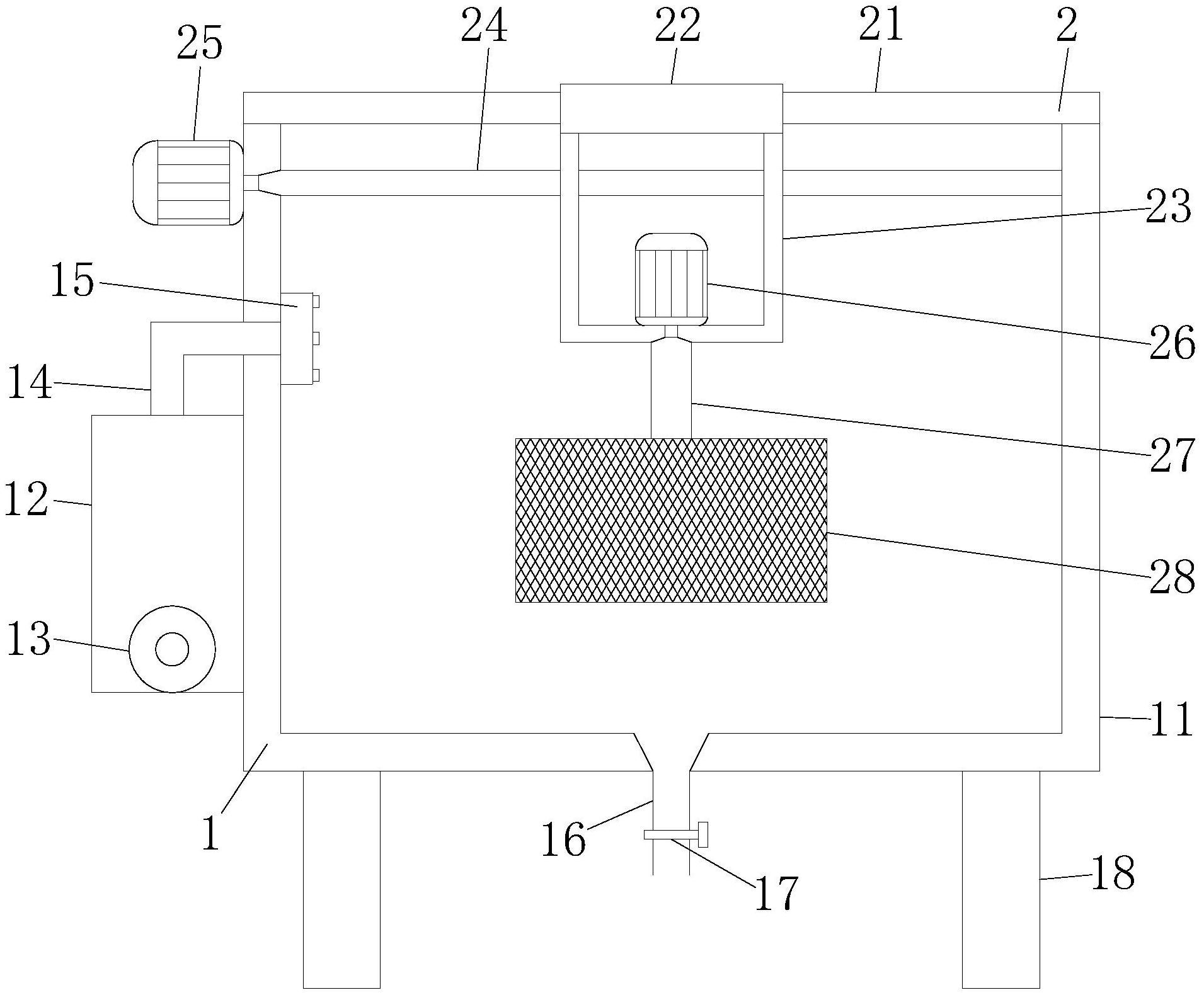 本实用新型适用于蔬菜加工设备技术领域,提供了一种蔬菜保鲜用清洗装置,包括清洗池组件、清洗组件,所述清洗池组件包括清洗池本体、水箱、水泵、水管和喷头,所述清洗组件包括滑杆、滑套、固定架、螺纹杆、第一电机、第二电机、连接杆和网笼,通过设置所述螺纹杆和所述第一电机,使得所述网笼可以在所述清洗池本体中水平移动,通过设置所述固定架、所述连接杆和所述第二电机,使得所述网笼可以在所述清洗池本体中转动,从而实现很好的涮洗,设置所述水箱、所述水泵、所述水管和所述喷头,可以对蔬菜进行最后的冲洗,保证蔬菜的洁净,有利于蔬菜的保鲜。