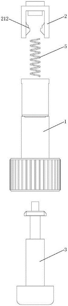 本实用新型公开了一种快拆式连接结构及电动晾衣架,快拆式连接结构用于连接叠接的第一板件和第二板件;包括连接本体,其内设轴向的通道且外壁设有弹片和第一限位面;弹片的一端相对连接本体固定且另一端形成自由端并朝向第一限位面,其内侧设有凸起;凸起设有垂直轴向的第二限位面;按压杆滑设于通道内且外壁设有用于抵推凸起的抵推部;复位件作用于按压杆;按压杆受力并克服复位件的弹力移动,其在抵推部滑过第二限位面后作用力释放,使抵推部反向移动直至抵接第二限位面,以使弹片张开并抵接第一板件或第二板件的表面,该连接结构应用于板件之间的连接,结构简单、拆装便利且连接结构稳定,其应用于电动晾衣架时,结构简单、稳定性好。