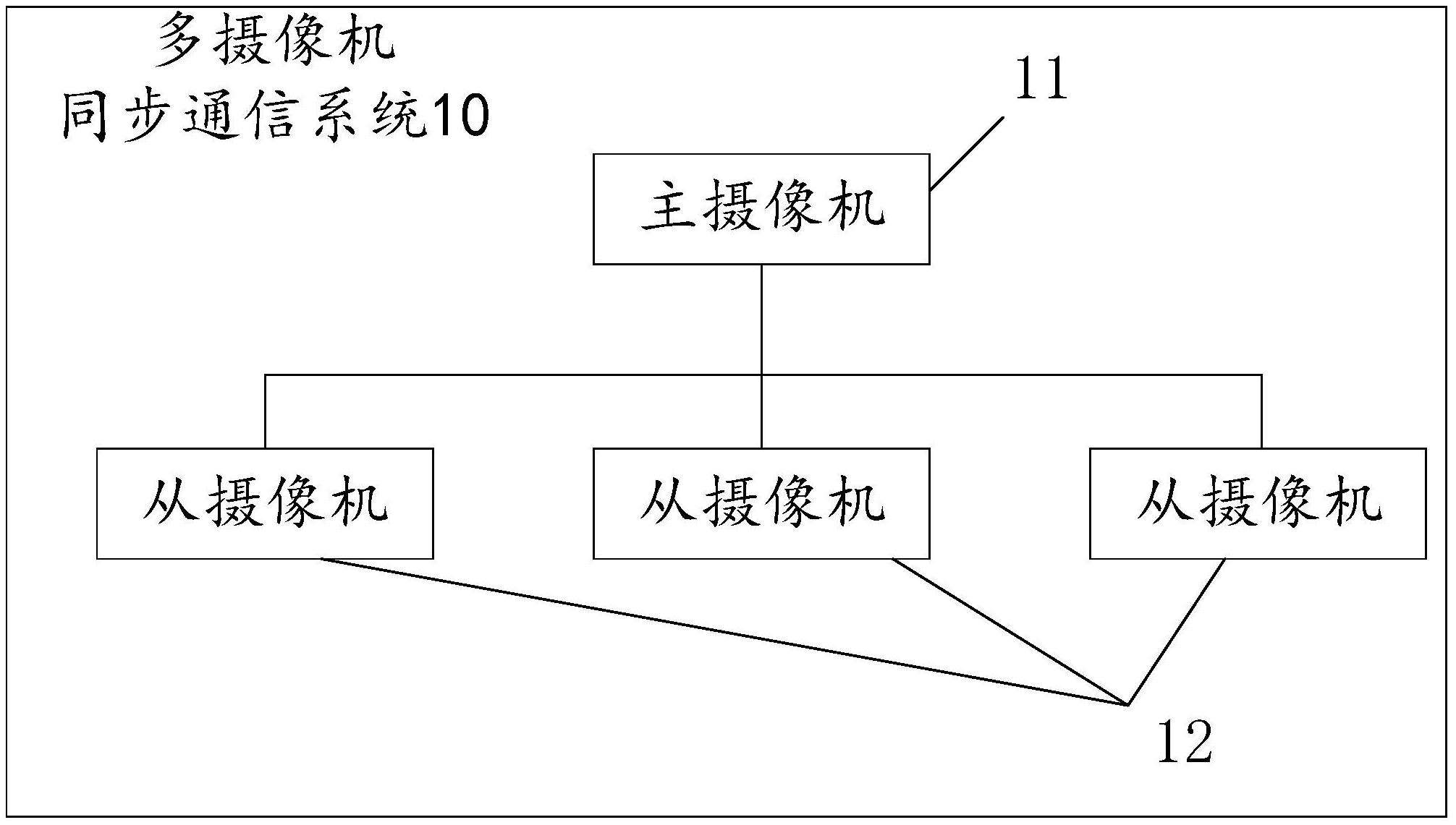 本申请实施例公开了一种基于蓝牙的多摄像机同步通信系统。本申请实施例提供的一种基于蓝牙的多摄像机同步通信系统,旨在通过选择任意一台摄像机作为主摄像机,其他的摄像机为从摄像机,主摄像机通过主通信模块蓝牙连接从摄像机的从通信模块,由主摄像机向从摄像机发送同步信息,以此实现多台摄像机的无线连接,实现多摄像机的无线同步通信系统。通过上述技术手段,通过一个主摄像机连接多个从摄像机,形成星型的网络拓扑结构,在主摄像机的主通信模块正常运行的情况下,从摄像机的从通信模块发生故障也不会影响其他从摄像机的正常通信工作,提高了多摄像机同步通信系统的可靠性。