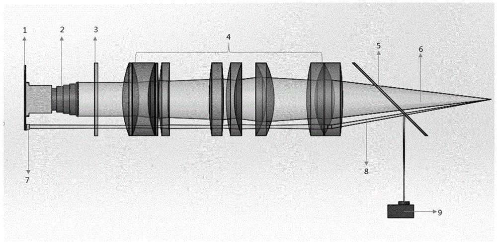 本实用新型提供了一种基于共光路的星模拟器标定与自准直测量系统,使星模拟器与星敏感器高精准的安装在设定位置,实现星敏感器与星模拟器两者光轴的准直。星模拟器的出瞳与星模拟器的光学镜头系统具有一定的间距,基于这一特性设计星模拟器,使星模拟器光学结构在满足星模拟器标定功能的条件下,星模拟器的镜头比星敏感器的入瞳大,则当光线充满整个光学镜头系统时,有一部分光线被准直入射到星敏感器中,该部分光线作为星模拟器标定部分;另一部分光线被准直照射到星敏感器固定法兰面上,该部分光线作为星敏感器与星模拟器的自准直测量光路,从而在共光路的条件下实现星模拟器标定的功能以及星模拟器与星敏感器自准直测量的功能。