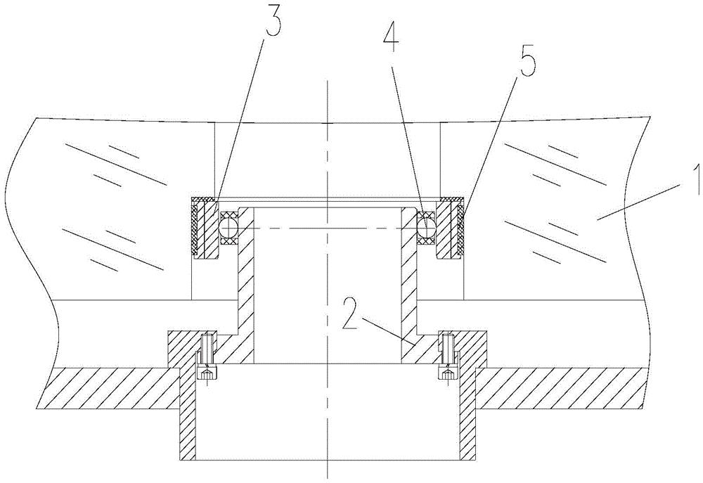 本实用新型公开了一种望远镜主镜中心定位机构,包括内环、外环和钢球;钢球通过支架设置于内环、外环之间,且内环、外环和钢球过盈配合安装;外环沿高度方向开设有多个通槽,沿外环的轴线方向观察通槽的端面呈L形;通过开设多个通槽,将外环分割为外环本体和位于外环本体外侧的多个连接板;外环通过固定在连接板外侧的第一聚四氟乙烯连接块与主镜的中心孔内壁连接。通过设置该中心定位机构,主镜能够沿内环上、下自由活动,而左、右零间隙,热膨胀问题对材料的要求不是特别高,降低成本,且易加工。