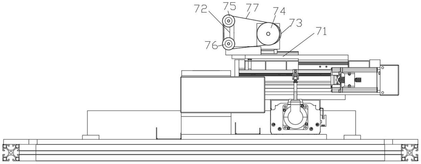 本实用新型公开了一种浮标抛光机的浮标抛光机构,包括底座,所述底座上一侧安装有竖向连接杆,另一侧安装有旋转装置;旋转装置连接有第一带轮,竖向连接杆上连接有上带轮和下带轮;第一带轮、上带轮和下带轮通过抛光带动力连接;底座连接有第二纵向移动机构,第二纵向移动机构连接有第二横向移动机构。本实用新型通过形成三角形的抛光带的竖直面对浮标进行抛光,从而有效避免可浮标旋转过程中的干涉,同时抛光结构可以水平向任意移动,便于根据浮标的曲面调整位置,从而进行更加全面均匀的抛光。