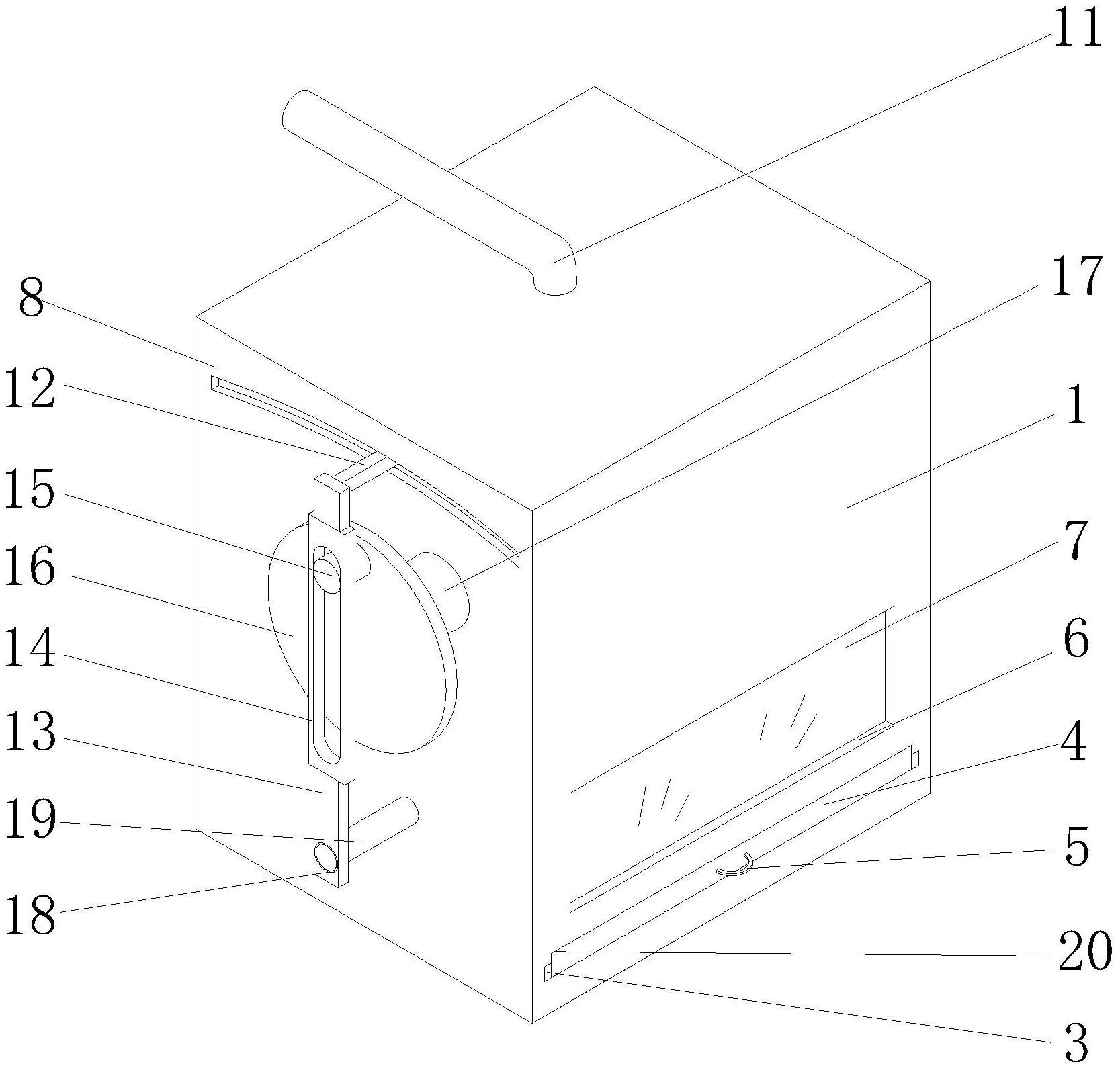本实用新型涉及玉米育种技术领域,且公开了一种新型玉米育种出芽率实验,包括培育箱,所述培育箱内部的左右两壁均开设有滑道,两个所述滑道的内部均滑动连接有滑块,所述培育箱的设置有浇水装置。该新型玉米育种出芽率实验,水从进水管流入到水管的内部,进而从雾化喷头喷出,雾化喷头进行喷水时,启动电机使转动盘带动转动杆在移动框的内部上下移动,从而使上侧移动板带动连接杆左右移动,进而使连接杆带动水管和雾化喷头左右往复移动,进而实现实验过程中对种子进行浇水时,不需要人工进行喷水,防止水资源浪费,避免了单一处浇灌量过大的情况,提高了育苗的存活率,加快了实验的进行,同时提高了工作效率。