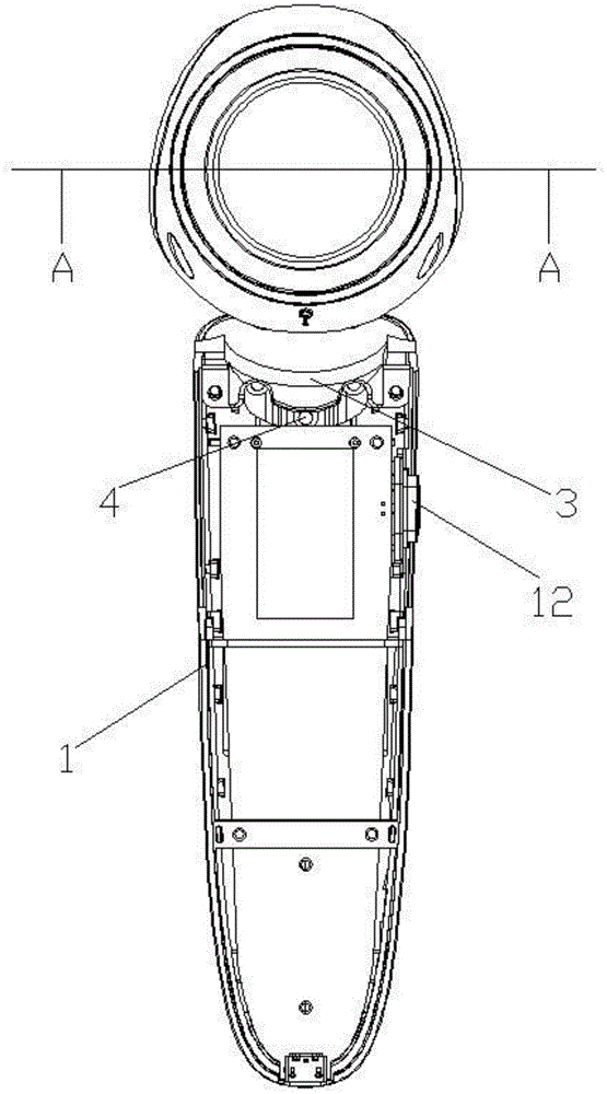 本实用新型公开了一种多功能美容护肤仪,属于多功能美容护肤仪领域,包括安装壳、控制面板、卡扣环、角位移传感器、旋转护肤头、一号功能区、二号功能区、三号功能区。通过安装壳上的控制面板进行控制,利用在一号功能区、二号功能区、三号功能区上分别集成的不同的功能,当使用完一个功能后,使用者手动掰动旋转护肤头转动进而带动卡扣环工作,卡扣环工作在旋转护肤头转动120度时对其进行限位,同时对下一个功能区上集成的功能元器件进行供电,实现功能区的切换,角位移传感器通过与卡扣环输出轴连接,进而判断卡扣环输出转动的角度,结合控制面板上的控制器可实现旋转护肤头每次转动120度,实现了护肤仪多功能的顺序使用。