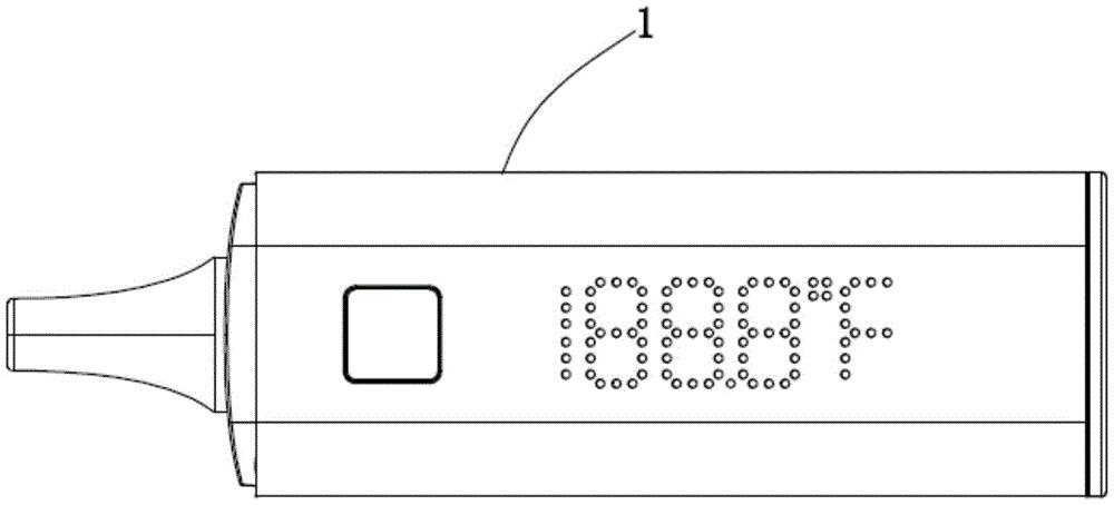 本实用新型涉及耳温枪技术领域,尤其是提供一种点阵式显示结构及耳温枪,该点阵式显示结构设于耳温枪的壳体内部,包括:PCB板、LED芯片、段码显示罩和遮光片;所述段码显示罩设置在所述PCB板上并罩住所述LED芯片,所述段码显示罩上设有多个间隔设置的段码槽,各所述段码槽内容置有至少一个所述LED芯片,所述遮光片设置在所述段码显示罩上并设有多个组成点阵显示的通孔。通过段码显示罩将PCB板上的LED芯片罩住,并通过段码槽将所需要的字符以段码的方式显示出来,然后通过遮光片上的通孔,将所需要的字符以点阵的方式显示出来,因此,通过遮光片就能将点阵显示和段码显示结合起来,使得段码显示罩具有点阵显示效果的同时还具有成本低的优点。