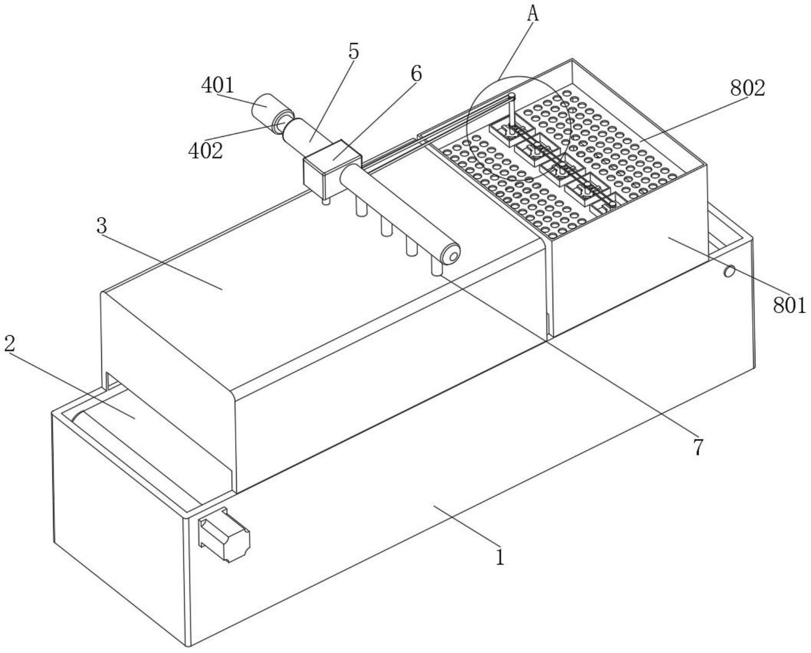 本实用新型公开了一种锂电池烘干散热装置,包括机体,所述机体上设置有传送带,所述机体上安装有烘干箱,所述烘干箱上通过加速机构安装有输送管,所述输送管上设置有操作箱,所述输送管上设置有多个连接管,各个连接管与烘干箱的内部相通设置,所述机体上设置有用于锂电池烘干处理后散热的散热机构,所述操作箱上设置有用于散热机构驱动的驱动机构;所述散热机构包括固定在机体上的散热箱,所述散热箱上安装有安装板。本实用新型在锂电池烘干处理的过程中,可以形成锂电池烘干装置上的散热机构,能够快速的降低烘干完成后锂电池表面的温度,便于烘干操作完成后的锂电池能够直接进行后续的加工操作,提高了锂电池生产的效率。