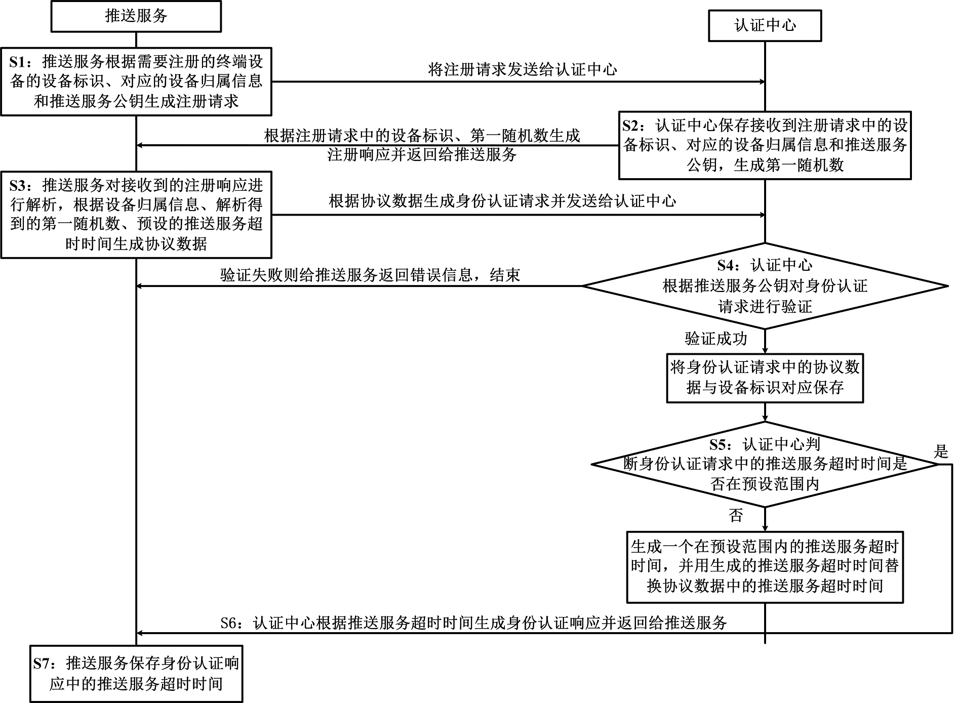 本发明公开一种实现物联网注册的方法及系统,属于信息安全领域。该方法包括:推送服务注册过程和终端设备注册过程,推送服务注册过程包括:认证中心接收推送服务发送的注册请求并将注册响应返回给推送服务;认证中心对推送服务发送的身份认证请求进行验证成功后将身份认证请求中的协议数据与设备标识对应保存,将预设范围内的推送服务超时时间返回给推送服务进行保存;设备注册过程包括:认证中心接收终端设备发送的载入请求并将载入请求响应返回给终端设备;认证中心对接收到的终端设备发送的身份认证请求进行验证成功后将推送服务的地址返回给终端设备,终端设备将推送服务的地址与设备标识对应保存。本发明可增强物联网整个链条的安全性。