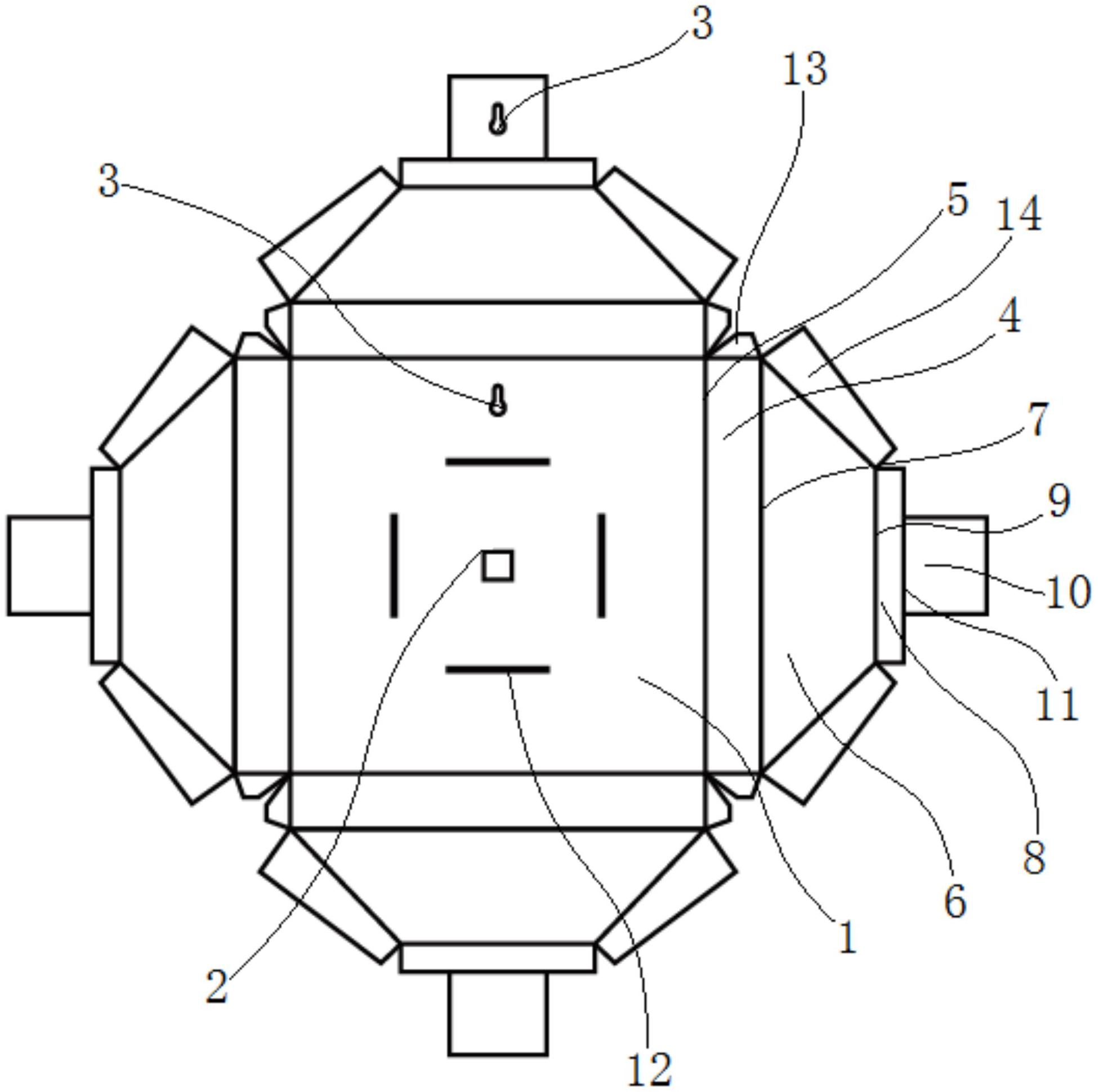 本实用新型公开了一体式折纸立体画框,其包括方形的背板,背板的四条侧边均向外侧延伸有方形的外侧折板且每条侧边与外侧折板之间设置有第一折痕,四个外侧折板的宽度相同且与背板上对应侧边的长度相等,每个外侧折板均向外侧延伸有等腰梯形的前折板且两者之间设置有第二折痕,每个前折板均向外侧延伸有方形的内侧折板且两者之间设置有第三折痕,每个内侧折板均向外侧延伸有固定片且两者之间设置有第四折痕,所述背板上对应所述固定片开设有四个固定孔。上述一体式折纸立体画框通过一整张卡纸经刀版压制后手工折叠而成,具有制造工艺简单、制造成本低、便于运输、重量轻和使用方便的优点。