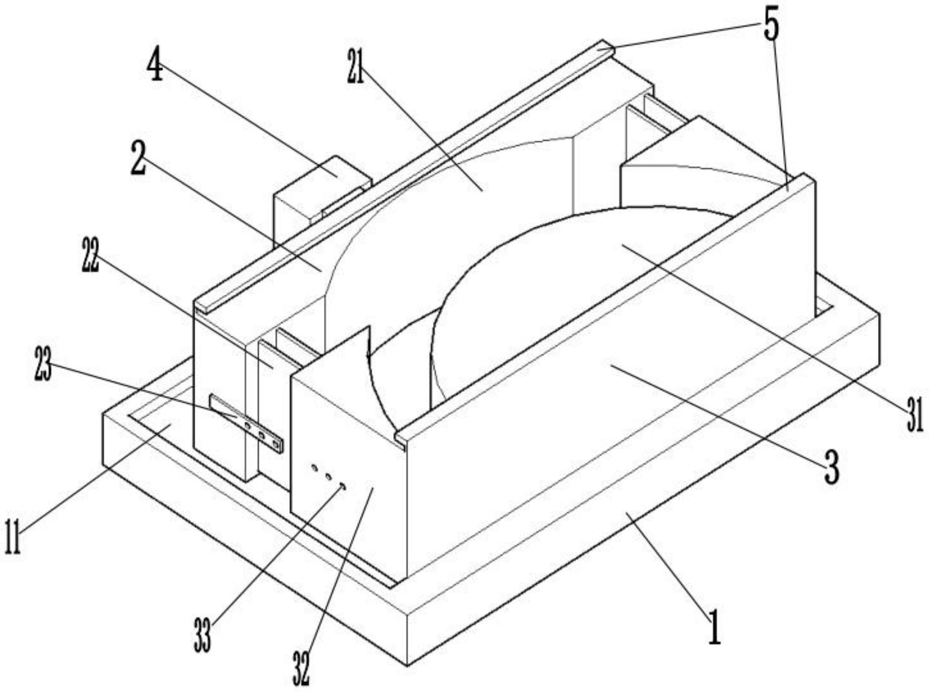 本实用新型提供一种强韧耐用弧形桥梁加工用模具,包括:底座、上模、下模、动力装置、安装架,底座的顶部开设有加工槽,所述加工槽内设有上模、下模,所述上模、下模相对设置,所述上模位于左侧并与加工槽呈朝向下模直线滑动连接,所述上模的左侧设有动力装置,所述上模的两外侧面均设有固定条,所述固定条上开有螺纹孔,所述上模朝向下模的中部侧面为弧形段,本实用新型解决的技术问题是现有弧形桥梁加工用模具安装过程比较繁琐,导致安装时间比较长,降低了操作人员的工作效率。