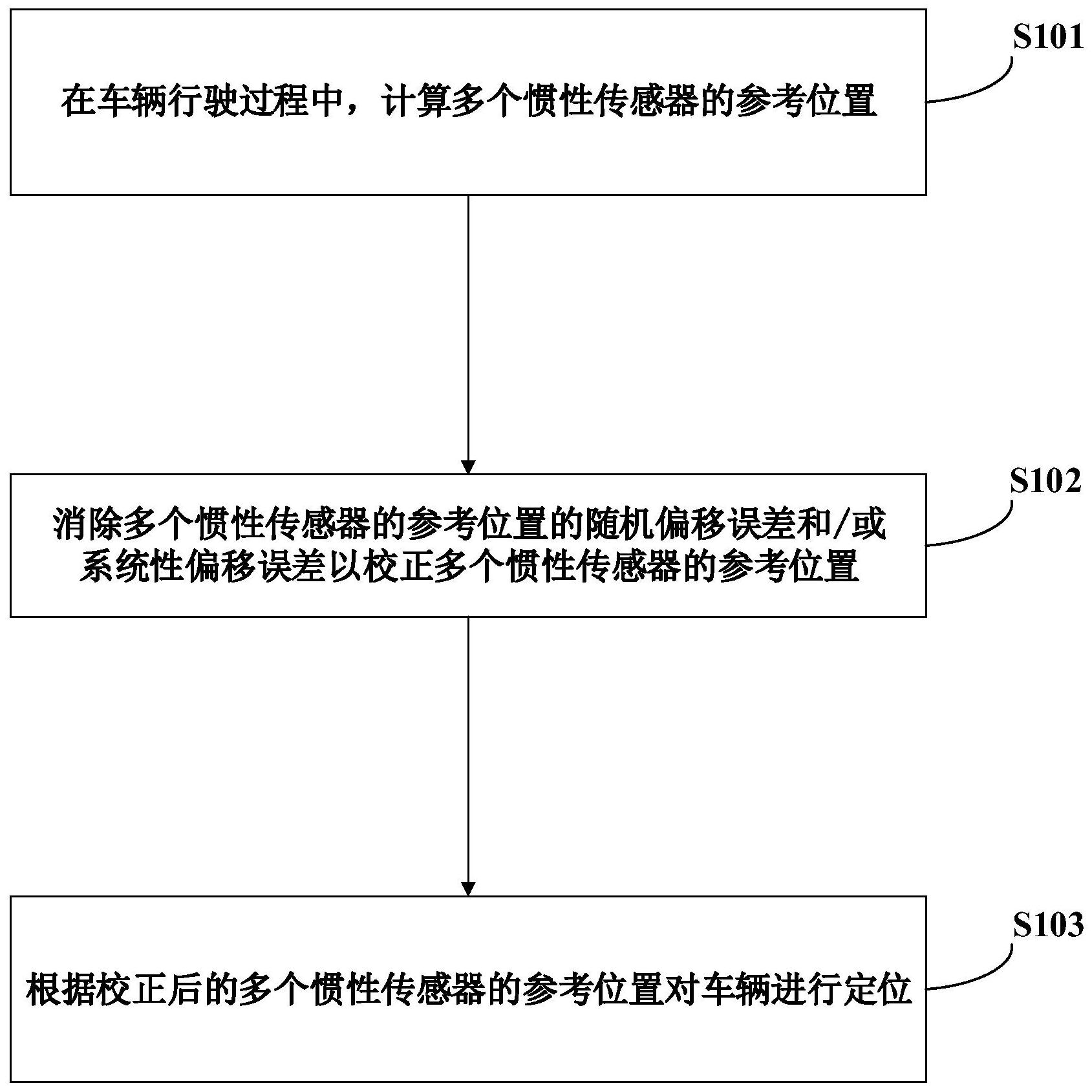 本发明公开了一种用于定位车辆的方法,所述车辆上设置有多个惯性传感器,所述方法包括:在车辆行驶过程中,计算多个惯性传感器的参考位置;消除多个惯性传感器的参考位置的随机偏移误差和/或系统性偏移误差以校正多个惯性传感器的参考位置;根据校正后的多个惯性传感器的参考位置对车辆进行定位。借助于本发明的用于定位车辆的方法和车载系统,能够消除多个惯性传感器的参考位置的随机偏移误差和/或系统性偏移误差以校正多个惯性传感器的参考位置,从而提高了惯性导航的定位精度。