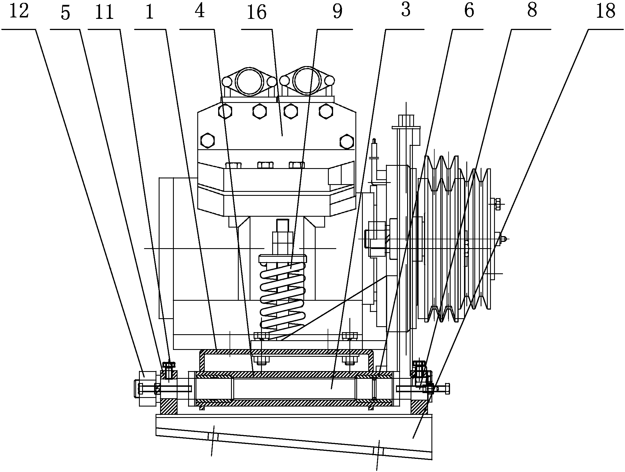 客车用空调压缩机底座轴向调节构件