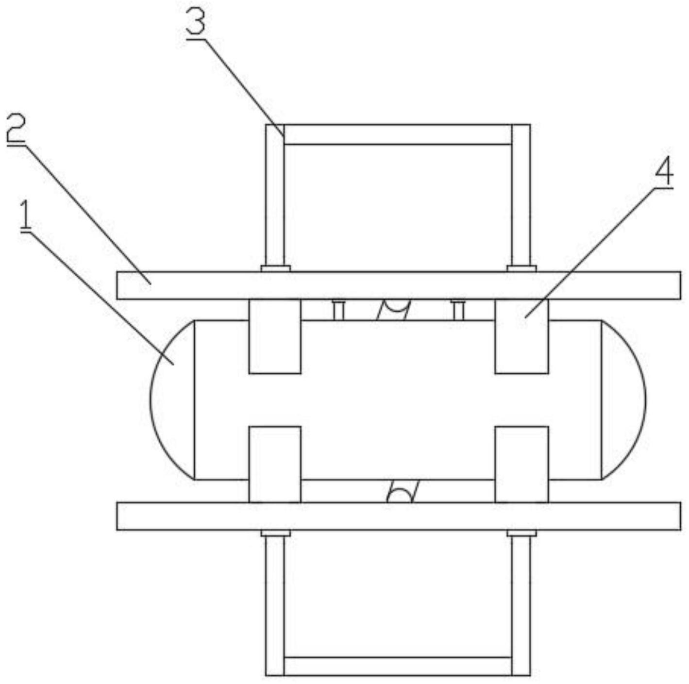 本发明公开了一种氢燃料客车的氢气瓶放置结构,包括氢气罐和放置机构,放置机构的固定夹持机构和定位支撑机构均安装在底座上;固定夹持机构的两组移动杆沿着底座相向运动,且移动杆上设置有夹持件;定位支撑机构的支撑座的中部设置有定位槽,氢气罐的外壁上设置有定位板,定位板与支撑座的定位槽相适配,固定夹持机构的中心板固定安装在底座上,中心板的顶面与旋转杆的中部转动连接,旋转杆的两端分别与活动杆活动连接,活动杆远离旋转杆的一端与移动杆连接,中心板的一侧设置有气缸,气缸的输出端与移动杆;本发明具有安装简单,使用方便的优点,只需要将其放置在预设的位置上,再启动气缸便可实现对氢气罐的固定。