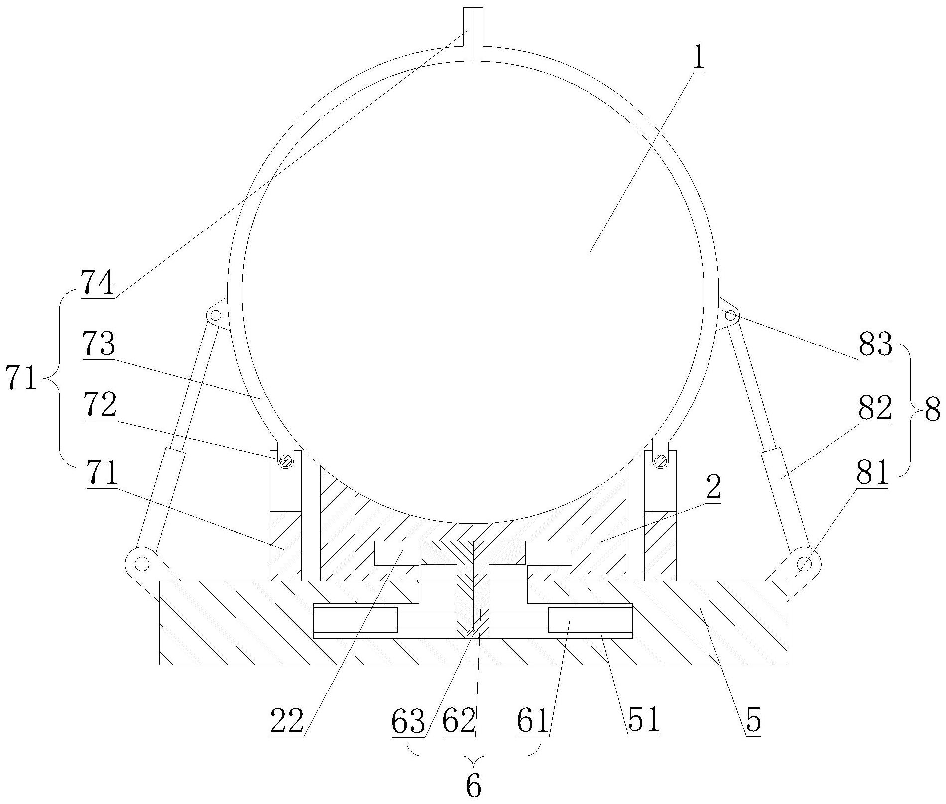 本发明公开了一种氢燃料电池客车车载储氢装置,包括储氢罐体和安装底座,所述储氢罐体上设置有进排气组件,进排气组件集加气和排气为一体的结构;储氢罐体底部固定设置有罐体底座,罐体底座用于将储氢罐体稳定安装在安装底座上;所述安装底座用于固定安装在客车车体上,安装底座上端设置有T型槽,T型槽上设置有用于对罐体底座进行锁紧的底部锁紧组件;安装底座上端对称安装有两组上部锁紧组件,上部锁紧组件用于对储氢罐体进行锁紧安装;本发明通过螺栓将相对应的两组竖直板进行锁紧,从而实现对储氢罐体的锁紧限位,提高储氢罐体在安装时的稳定性。
