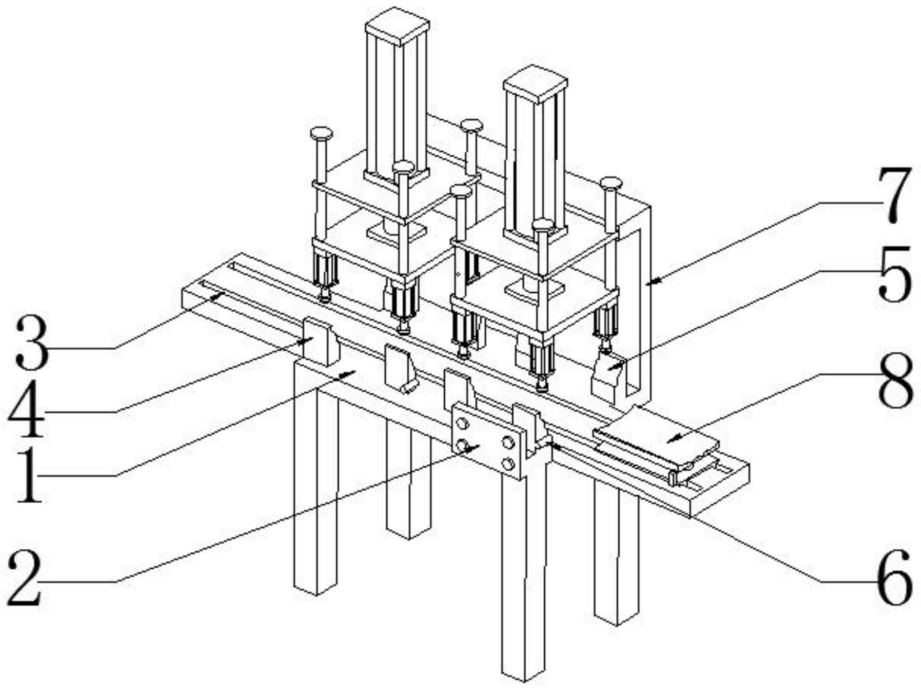 本发明公开了一种汽车门板卡扣装配工装,包括工作台、控制面板、滑轨、第一安装座、第二安装座、光栅读数头、支撑座、滑动机构、支撑板、第一气压杆、安装板、导向杆、挡块、气压泵、四通连接阀、连接管、第二气压杆和橡胶抵触头,所述工作台一侧安装有控制面板,所述工作台顶部开设有滑轨;本发明汽车门板卡扣装配工装可以准确的对汽车门板进行输送定位,方便操作使用;同时在对汽车门板固定的同时会根据凹凸不平的车板面进行自我调整保证固定安装牢固。