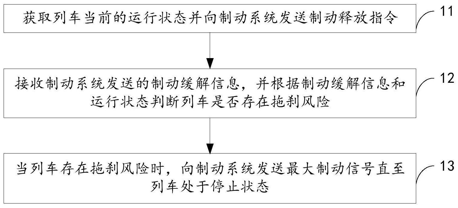 本发明涉及机车控制技术领域,尤其是一种列车防护方法、装置、计算机设备及存储介质,该列车防护方法包括:获取列车当前的运行状态并向制动系统发送制动释放指令;接收制动系统发送的制动缓解信息,并根据制动缓解信息和运行状态判断列车是否存在拖刹风险;当列车存在拖刹风险时,向制动系统发送最大制动信号直至列车处于停止状态。通过本发明的实施,能够解决现有技术中针对列车防护方法存在安装复杂且成本较高的问题。