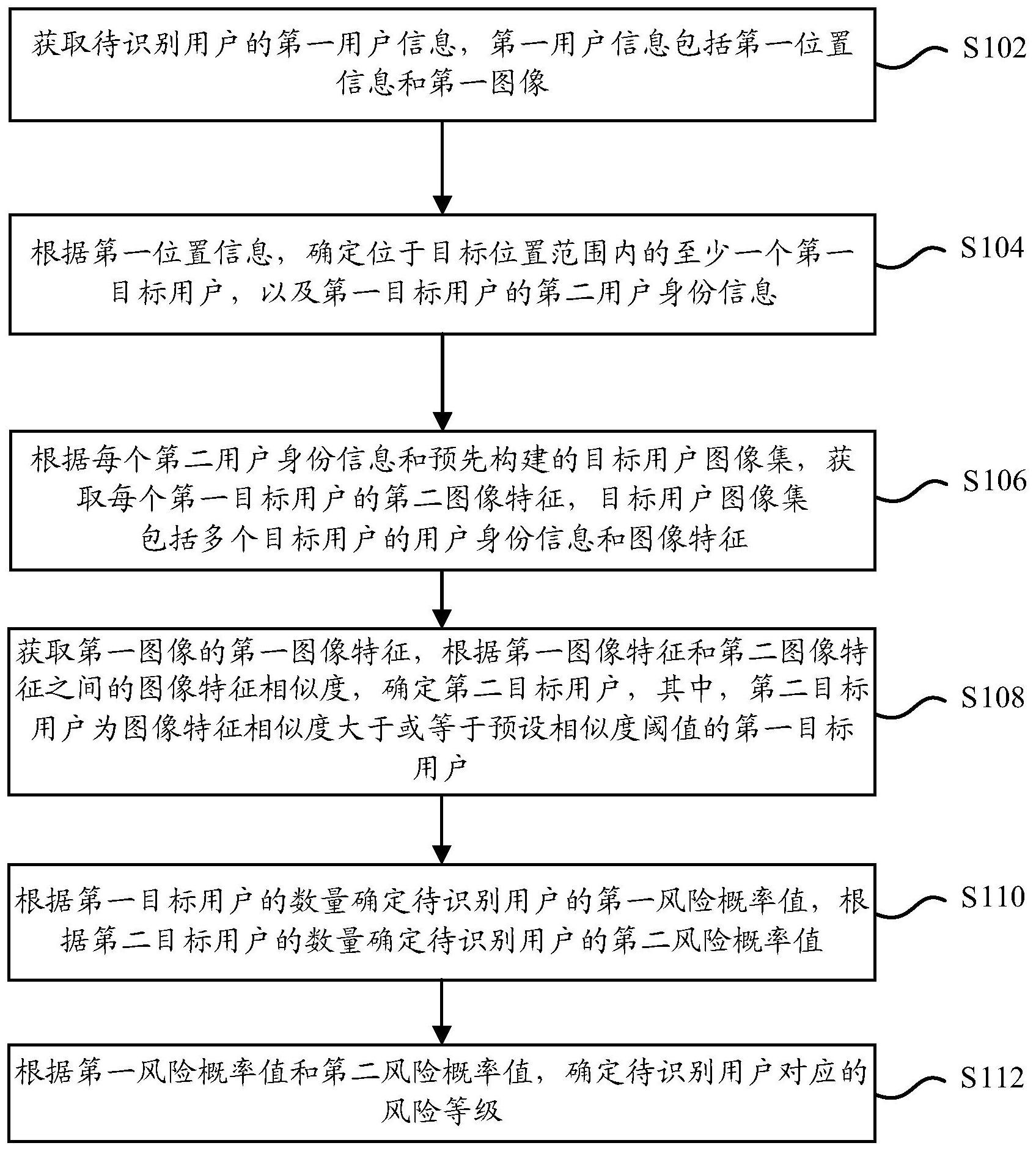本申请公开了一种数据处理方法及装置。所述方法包括:获取待识别用户的第一位置信息和第一图像;根据第一位置信息,确定位于目标位置范围内的第一目标用户及其第二用户身份信息;根据每个第二用户身份信息和目标用户图像集,获取第一目标用户的第二图像特征;根据第一图像特征和第二图像特征之间的图像特征相似度,将图像特征相似度大于或等于预设相似度阈值的第一目标用户作为第二目标用户;根据第一目标用户的数量确定待识别用户的第一风险概率值,根据第二目标用户的数量确定待识别用户的第二风险概率值;根据第一风险概率值和第二风险概率值确定待识别用户的风险等级。该技术方案能够提升风险用户识别的准确性。