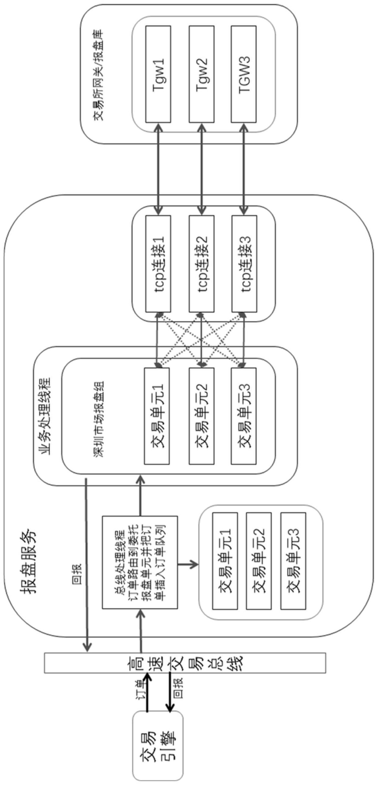 本发明涉及一种基于深交所TGW的集群报盘系统,包括高速交易总线和报盘服务模块,高速交易总线通过UDP组播网络和交易引擎进行通信,接收交易引擎的交易订单,发送给报盘服务模块,同时向交易引擎发送确认和成交回报数据,报盘服务模块包括总线处理子模块、业务处理子模块和多个TCP连接,总线处理子模块接收交易订单,将属于同一个报盘组的交易订单编入同一个订单队列,业务处理子模块按照轮序报盘算法,将订单队列通过TCP连接报送给深交所TGW。与现有技术相比,本发明具有提高报盘席位的利用率、有效解决委托报盘时订单积压问题等优点。