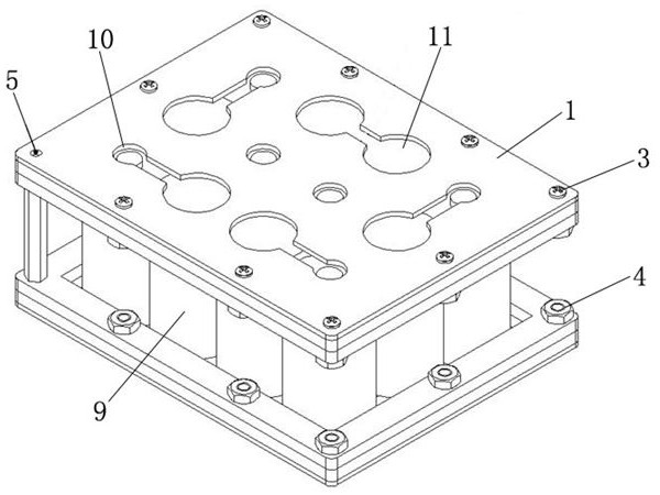 本实用新型涉及一种电池组件焊接定位装置。具体包括:定位座,有两个,且分别为上定位座和下定位座;定位座包括定位板,定位板的边缘设有围挡,通过上、下定位座上的围挡能够约束待焊接的多个圆柱电池的两端;焊接贯通孔,设置于定位板上,包含与圆柱电池正极对应的正极对应孔和与圆柱电池负极对应的负极对应孔;在相邻两个电池的焊接位置处,与两个电池的待焊接电极对应的焊接贯通孔之间相连通。由于电池组件焊接定位装置的定位,能够一次实现对所有电池的同一端的焊接,焊接效率大大提高,而且由于焊接贯通孔在需要焊接的两电极对应的位置处连通,明确了焊接位置,只需按照焊接贯通孔施焊即可,更容易保证各焊接点位焊接质量的一致性。