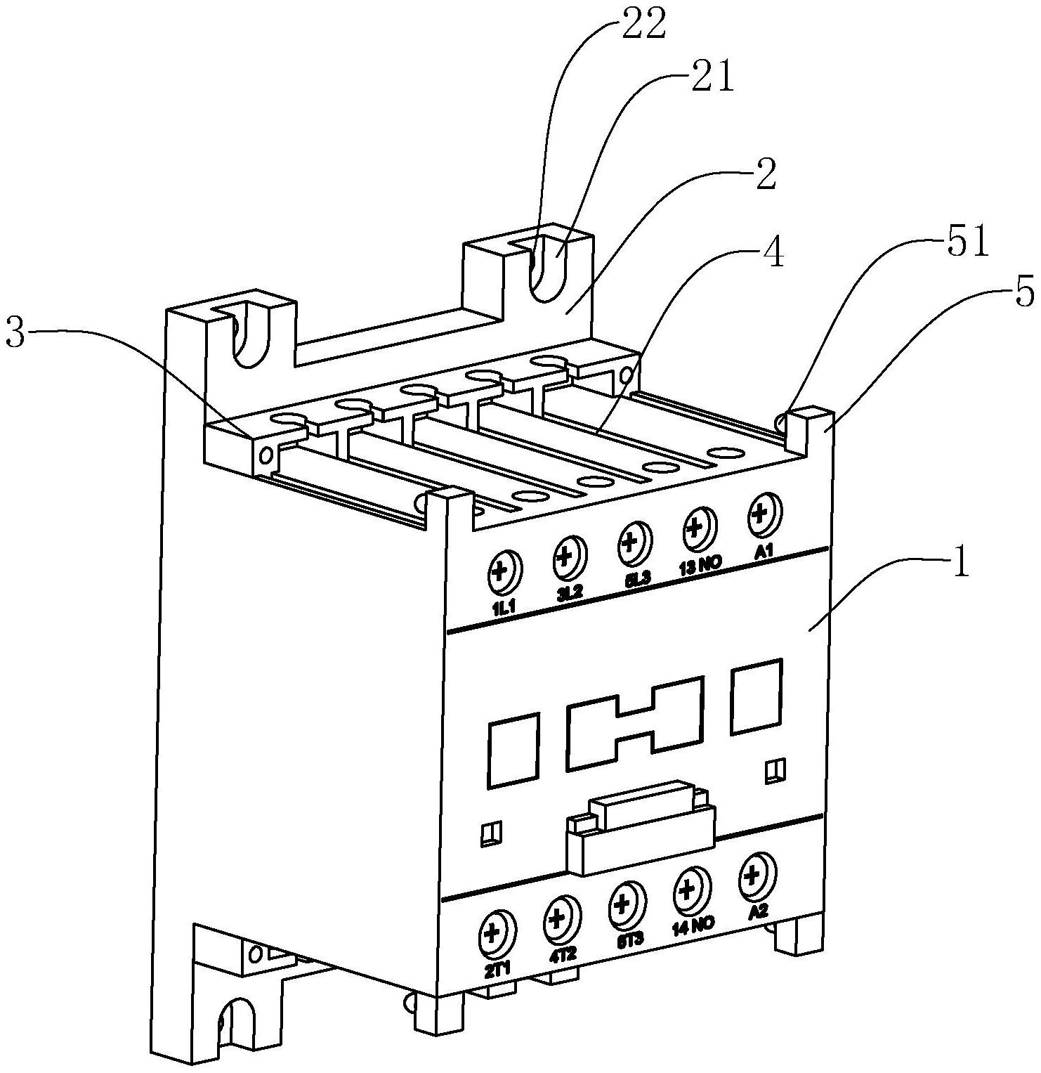 本实用新型公开了一种具有束线功能的交流接触器,包括交流接触器本体,交流接触器本体沿垂直方向延伸形成安装板,交流接触器本体顶部滑动安装有束线板,束线板一侧与安装板抵接,束线板包括顶板、若干分隔板以及束线孔,顶板上表面开设有若干束线孔,束线孔位于远离安装板的一侧,顶板的底部均匀分布有若干分隔板,且位于两侧的分隔板侧壁设有插接孔,交流接触器本体顶部设有与分隔板形状适配的若干滑槽,分隔板滑动连接于滑槽内,交流接触器本体顶部远离安装板和束线板的一端设有插接块,插接块朝向束线板一侧延伸形成球形端部,球形端部与插接孔卡接配合;本实用新型具有整理电线、防止电线缠绕的有益效果。