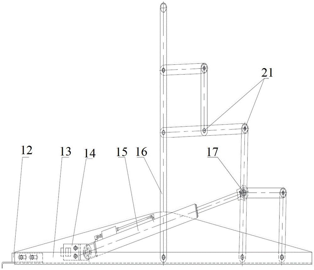本实用新型公开了一种工程渣土车环保顶盖启闭装置,其包括:动力单元、前折叠架总成、后折叠架总成、防雨布;前、后折叠架总成分别安装在工程渣土车车厢前后两端,动力单元设置在前折叠架总成上,前折叠架总成包括前连杆机构,后折叠架总成包括后连杆机构,前连杆机构和后连杆机构之间通过连接管连接,防雨布铺设在前连杆机构和后连杆机构伸展后的连接管外部,动力单元的动力输出轴连接前连杆机构的一个铰接点,通过动力单元驱动前连杆机构和后连杆机构伸展或折叠,实现顶盖的启闭。本实用新型结构简单自重轻,零件简单容易加工、装配精度要求不高、用料少、成本低,使用安全可靠,操作方便。
