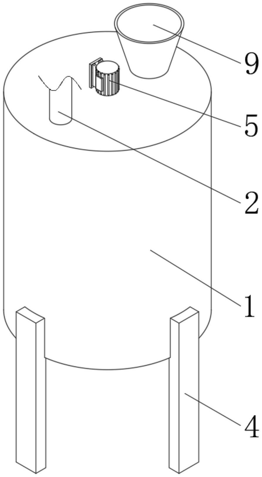 本实用新型涉及饲料添加剂生产技术领域,且公开了饲料添加剂生产用辅助加料装置,包括搅拌桶及其表面的支撑腿,所述搅拌桶顶部的左侧连通设置有进料管,所述搅拌桶内腔的底部固定有电动出料口,所述搅拌桶的顶部固定有第一电机;本实用新型通过导向机构使辅助原料能够分散在搅拌桶的内部,增加其分散效果,不仅减少了需要混合的时间,而且也提高了产品的品质,同时在混合完毕后,清洁刷可以对搅拌桶的内壁进行清理,使其内壁不会残留原料,不仅不会造成原料的浪费,同时也不会对下次混合的配比造成影响,解决了目前的加料装置在使用时,不能对原料进行分散,同时混合完毕后不能对其内部进行清理的问题。