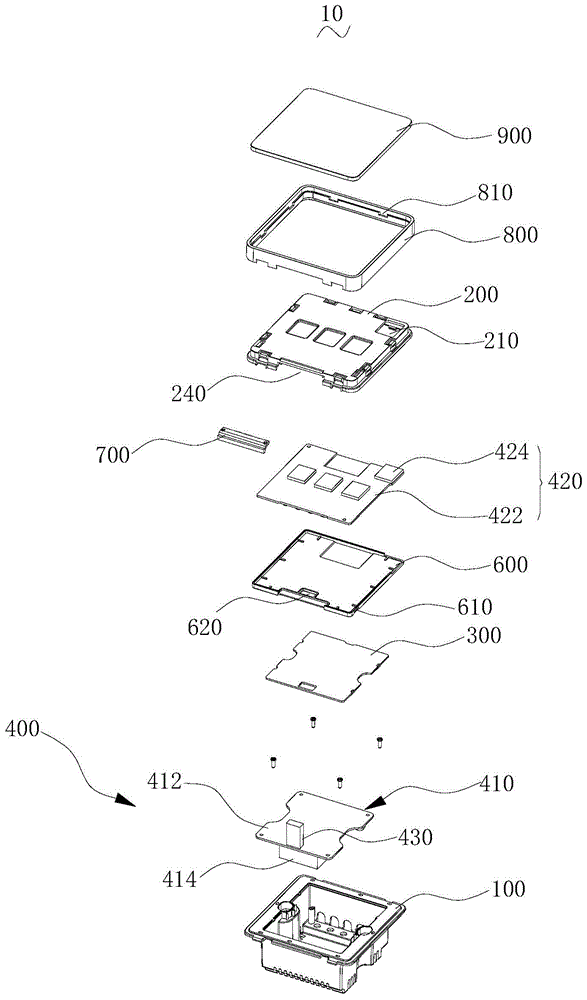 本实用新型涉及一种开关。该开关包括后壳、前壳、分隔板及电路模组;后壳为具有一开口的壳体;前壳盖设于后壳的开口上,前壳与后壳共同配合形成一收容腔;分隔板收容于收容腔中,且分隔板与后壳固定连接,分隔板将收容腔分隔成第一收容部和第二收容部;电路模组包括电源电路模块和按键电路模块,电源电路模块收容于第一收容部中,按键电路模块收容于第二收容部中,按键电路模块与电源电路模块电连接,且按键电路模块可控制电源电路模块与外接电源之间的电连接。上述开关较为安全。