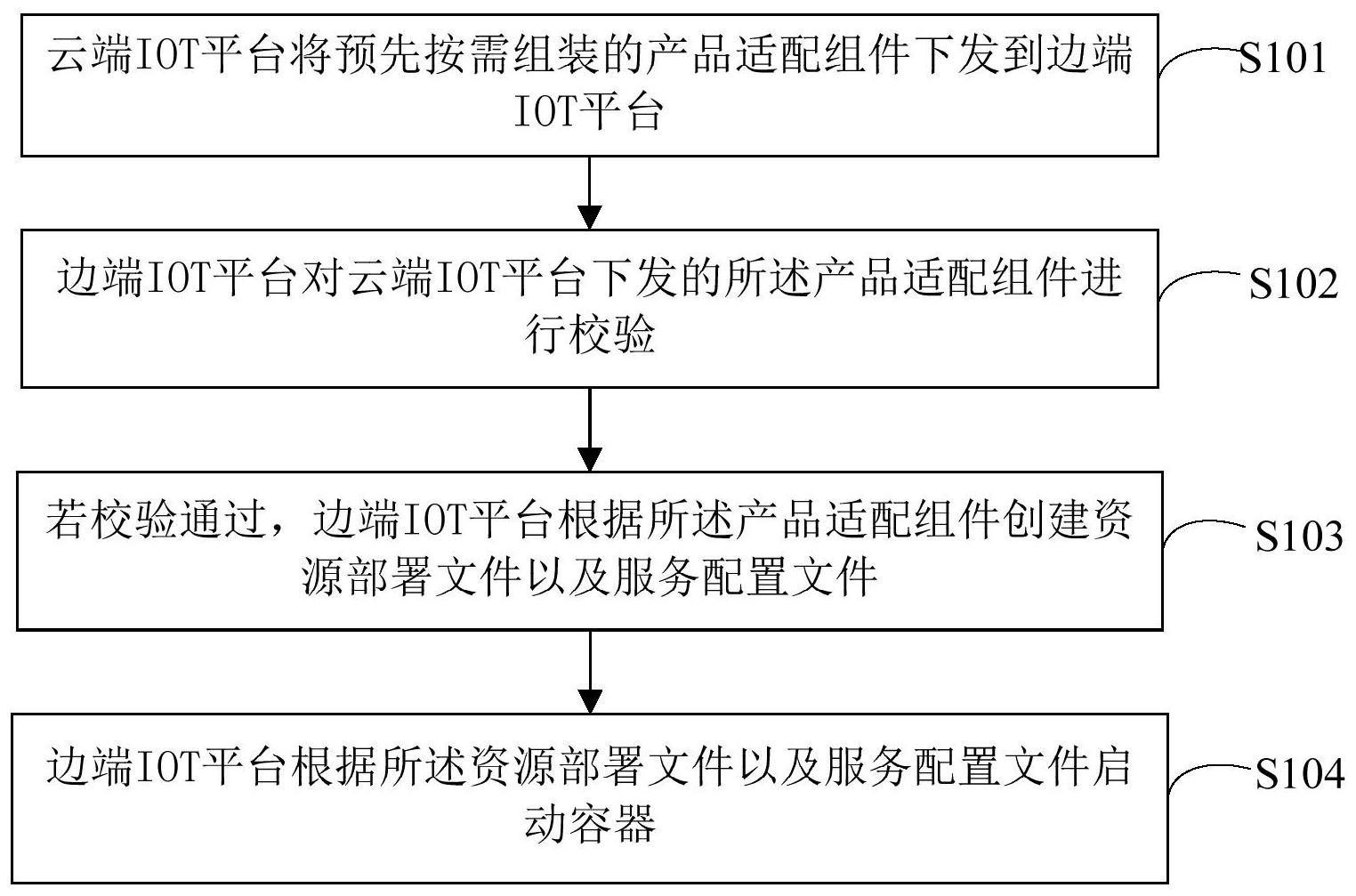 本申请公开了一种基于云原生的IOT平台协议适配方法、装置、设备及存储介质,所述方法包括:云端IOT平台将预先按需组装的产品适配组件下发到边端IOT平台;边端IOT平台对云端IOT平台下发的所述产品适配组件进行校验;若校验通过,边端IOT平台根据所述产品适配组件创建资源部署文件以及服务配置文件;边端IOT平台根据所述资源部署文件以及服务配置文件启动容器。根据本申请实施例提供的基于云原生的IOT平台协议适配方法,能够根据需求灵活选择设备的网络组件和协议组件,同时基于云原生技术管理容器的资源,达到设备接入灵活、硬件资源均衡负载的效果。使得设备接入物联网平台便捷化、网络适配化和协议适配化。