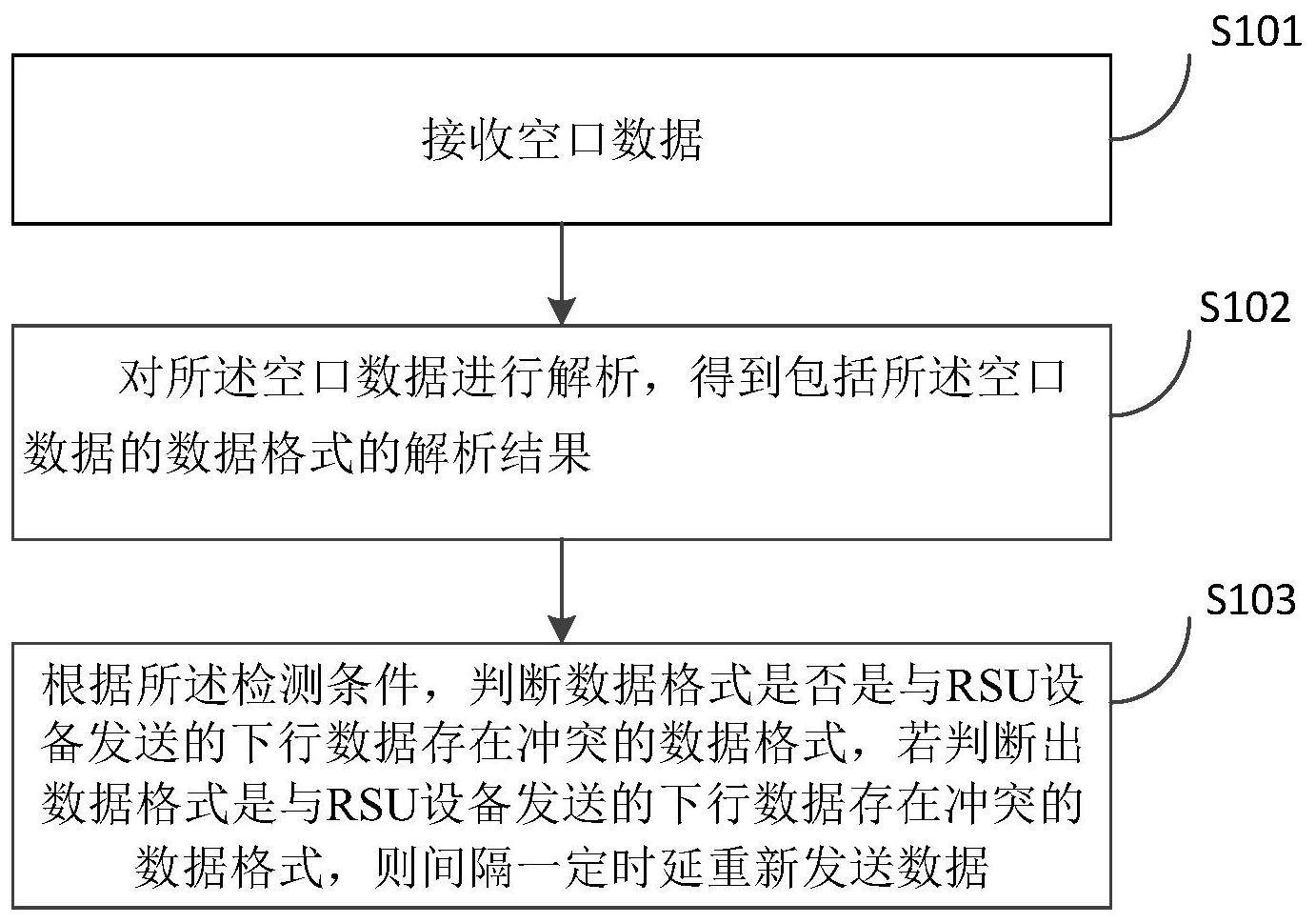 本发明公开了一种应用于ETC的RSU设备的多天线防信号碰撞的方法及装置,所述方法应用于RSU设备中,所述方法包括:接收空口数据;对空口数据进行解析,得到包括空口数据中数据格式的解析结果;根据预设检测条件,判断数据格式是否是与RSU设备发送的下行数据存在冲突的数据格式,若判断出数据格式是与RSU设备发送的下行数据存在冲突的数据格式,则间隔一定时延重新发送数据,因此,采用本申请实施例,由于能够精准地确定出重新发送数据的间隔时延,避免相邻的RSU设备天线信号之间的碰撞,这样,最终提高了RSU设备和OBU设备交易的成功率。