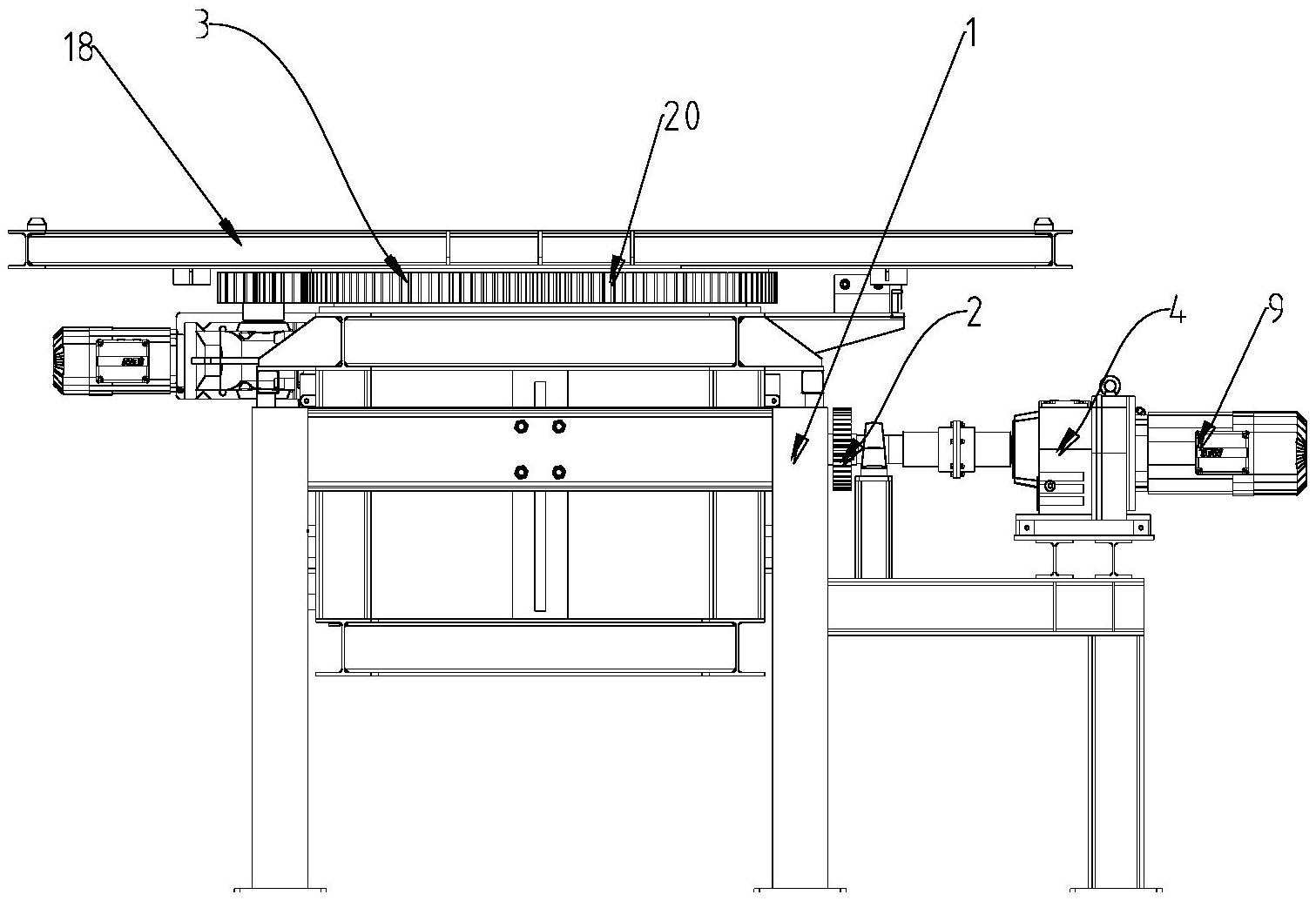本实用新型涉及车辆举升技术领域,提出了一种车辆用旋转举升装置,包括机架、设置在机架上的车位提升装置以及设置在车位提升装置上的车位旋转装置,车位旋转装置上方用于承托车辆,车位提升装置包括设置在机架上的驱动机构,驱动机构驱动第一齿轮和第二齿轮相对转动设置在机架上,第一齿板和第二齿板均设置在车位旋转装置上,第一齿板和第二齿板分别与第一齿轮和第二齿轮啮合,第一齿轮和第二齿轮转动后,驱动第一齿板和第二齿板同方向升降。通过上述技术方案,解决了相关技术中车辆用旋转举升装置举升动作不平稳的问题。
