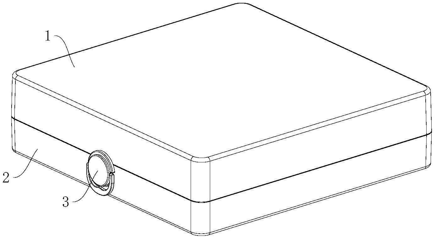 本实用新型涉及包装盒技术领域,具体涉及一种防伪包装盒,包括盒体与盒盖,盒体与盒盖通过套接形成封闭结构,盒体与盒盖之间设置卡扣结构;卡扣结构包括盒体孔、盒盖台阶孔和旋转卡扣;旋转卡扣包括卡入盒体孔内的头部,头部前端设置有扣齿;旋转卡扣还包括开启板,开启板上固定有连接柱,连接柱卡入盒盖台阶孔内;连接柱与头部通过断裂柱连接,在连接柱转动时断裂柱扭转断裂,同时开启板顶开盒盖以开启包装盒。本实用新型采用旋转卡扣卡入盒体与盒盖实现锁紧,将旋转卡扣转动后可实现盒盖与盒体的开启,同时会导致断裂柱的扭断;在开启盒盖后无法再使用该旋转卡扣重新进行锁紧还原,进而能够避免被轻易调换产品,从而实现了防伪。