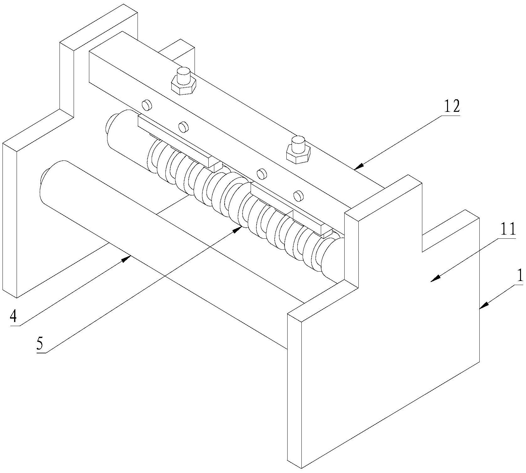 本实用新型涉及印刷工程技术领域,尤其涉及一种纸张分切装置,包括机体、刀具组件和辊体组件;所述机体包括立板和横梁,两块所述立板相对于机体的轴线呈镜像布置,所述立板平行于送料方向,所述横梁的两端分别架设在两块立板上,所述横梁垂直于送料方向;所述刀具组件包括安装座和切刀,所述横梁上设有供安装座滑动的滑槽,所述滑槽垂直于送料方向,所述滑槽的侧壁间隔设有定位槽,所述安装座的侧壁设有与定位槽卡位配合的弹簧销,所述切刀设置在安装座上,所述切刀的刀刃朝向与送料方向相反的方向。本实用新型提供的分切装置提高了纸张分切效率和精度。