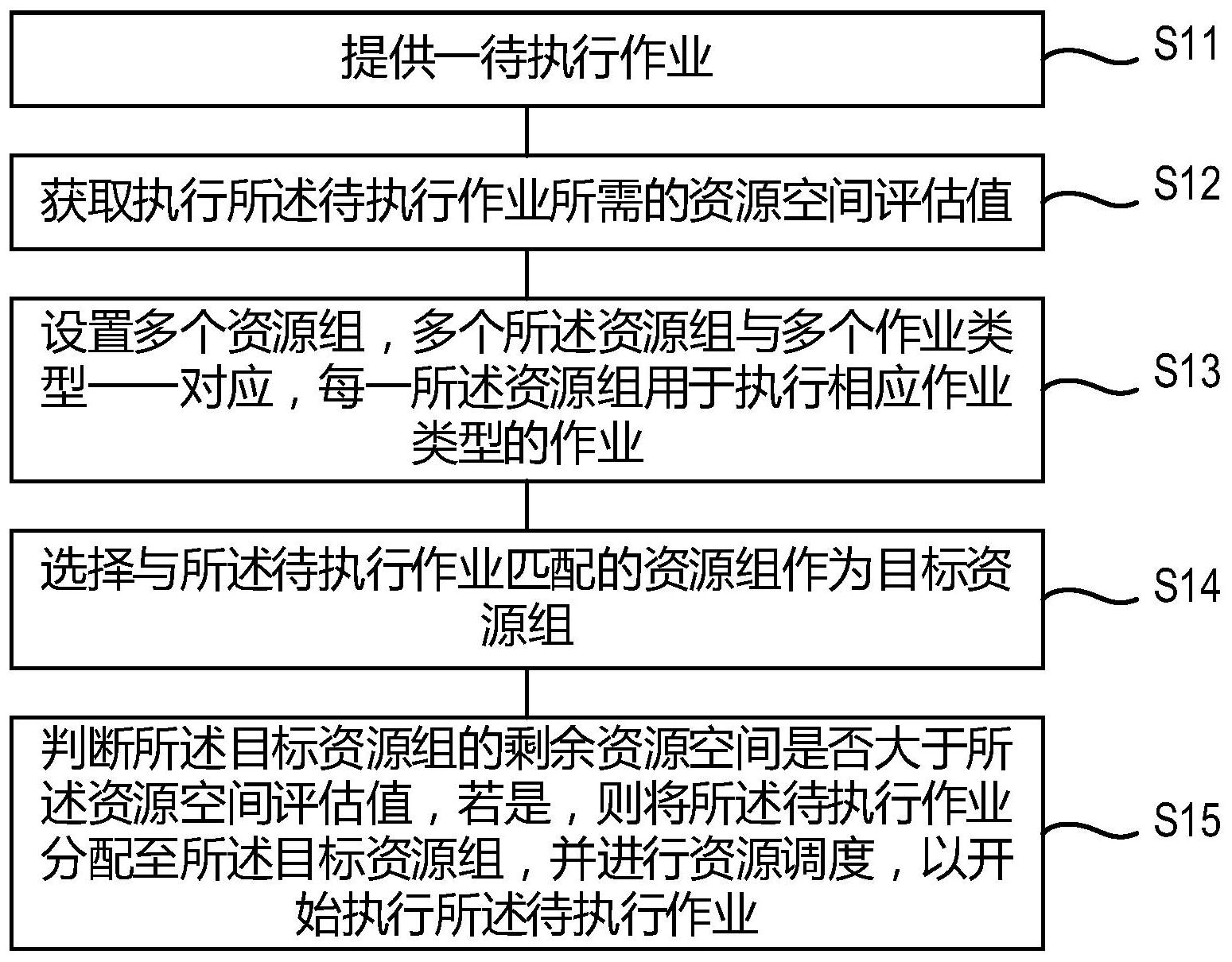 本发明涉及通信技术领域,尤其涉及一种电商平台作业调度方法及系统。所述电商平台作业调度方法,包括如下步骤:提供一待执行作业;获取执行所述待执行作业所需的资源空间评估值;设置多个资源组,多个所述资源组与多个作业类型一一对应,每一所述资源组用于执行相应作业类型的作业;选择与所述待执行作业匹配的资源组作为目标资源组;判断所述目标资源组的剩余资源空间是否大于所述资源空间评估值,若是,则将所述待执行作业分配至所述目标资源组,并进行资源调度,以开始执行所述待执行作业。本发明提高了作业执行的效率,在提高电商平台资源利用率的同时,也确保了电商平台持续、稳定的运行。