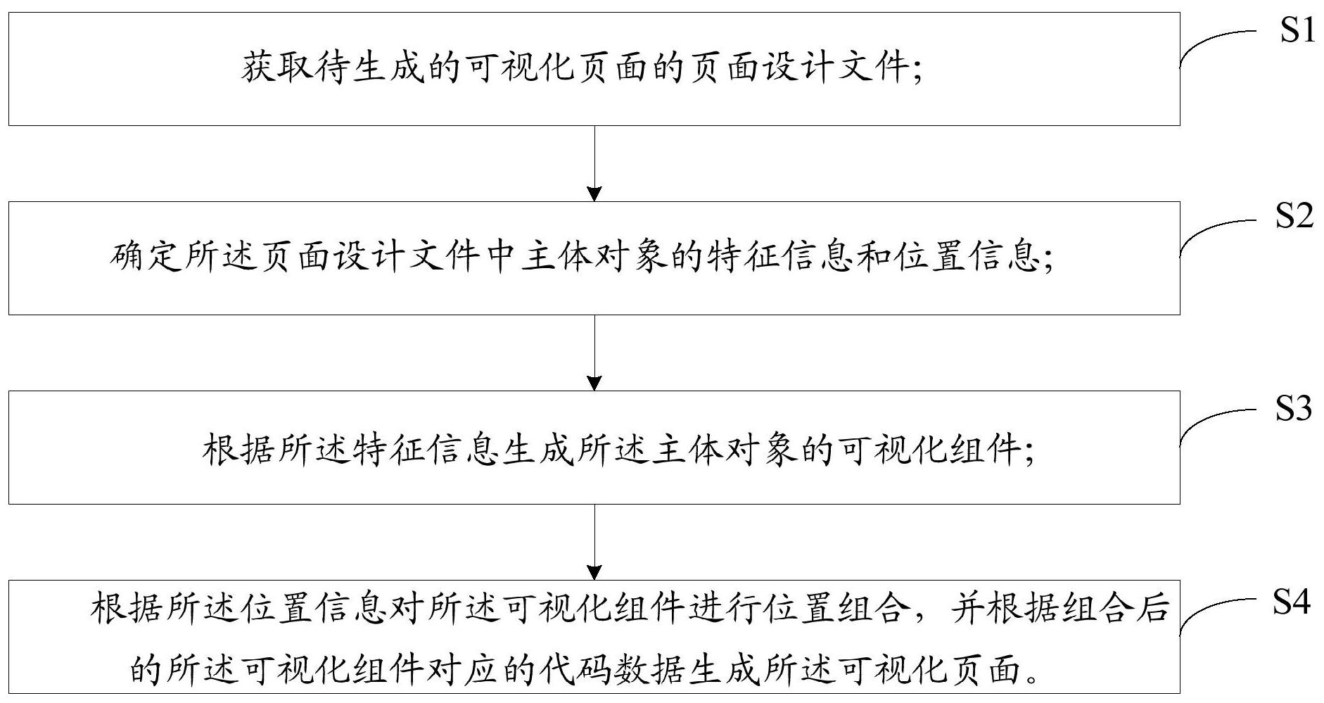 本发明公开了一种数据可视化大屏自动布局的方法、装置及存储介质,该数据可视化大屏自动布局的方法包括:获取待生成的可视化页面的页面设计文件;确定所述页面设计文件中主体对象的特征信息和位置信息;根据所述特征信息生成所述主体对象的可视化组件;根据所述位置信息对所述可视化组件进行位置组合,并根据组合后的所述可视化组件对应的代码数据生成所述可视化页面。本发明的技术方案,旨在降低可视化页面的开发成本,提高可视化页面的开发效率。