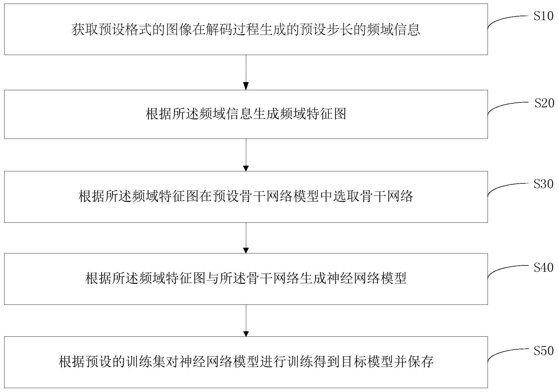 本发明公开了一种神经网络模型的训练方法、装置以及计算机可读存储介质,获取预设格式的图像在解码过程生成的预设步长的频域信息;根据所述频域信息生成频域特征图;根据所述频域特征图在预设骨干网络模型中选取骨干网络;根据所述频域特征图与所述骨干网络生成神经网络模型;根据预设的训练集对神经网络模型进行训练得到目标模型并保存。本发明保证模型得到了能准确对高清图像进行分析的神经网络模型。
