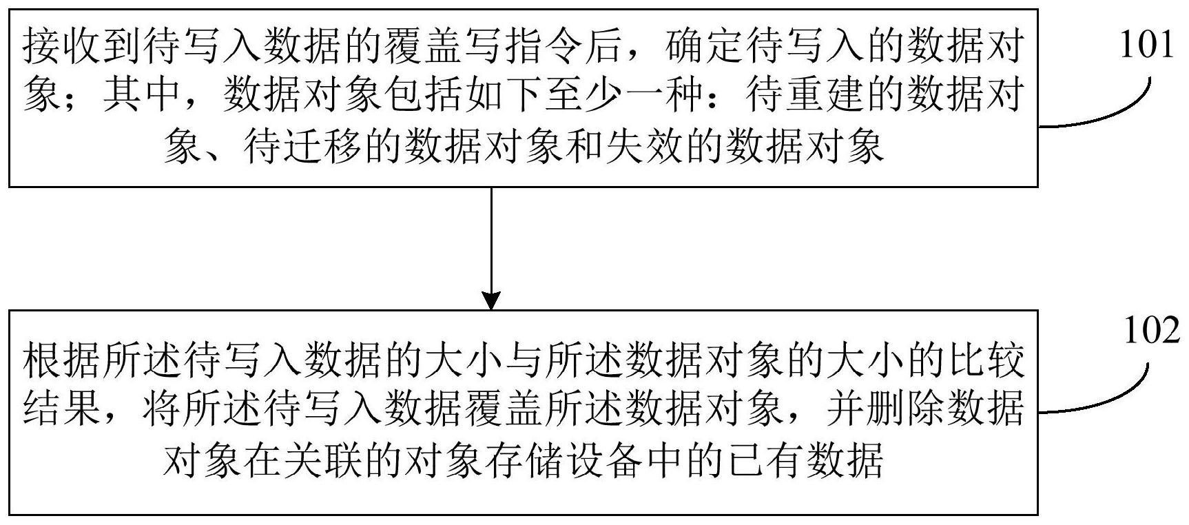本发明实施例公开了一种云存储数据处理方法、装置、电子设备和存储介质。该云存储数据处理方法包括:接收到待写入数据的覆盖写指令后,确定待写入的数据对象;根据所述待写入数据的大小与所述数据对象的大小的比较结果,将所述待写入数据覆盖所述数据对象,并删除所述数据对象在关联的对象存储设备中的已有数据。本发明实施例基于对数据对象的覆盖写指令,直接在已有存储数据的数据对象中将待写入数据写入,省去对数据对象中已有数据恢复重建的过程,并在待写入数据覆盖数据对象后,删除该数据对象在关联的对象存储设备中的已有数据分片。实现待写入数据的冗余和一致性,优化重建和数据迁移过程中的数据写流程。