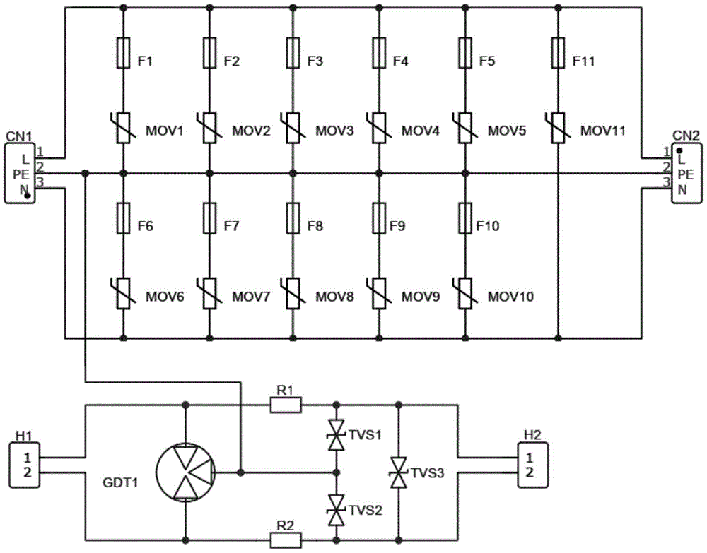 一种具有大通流集成式电源控制系统的二合一防雷器