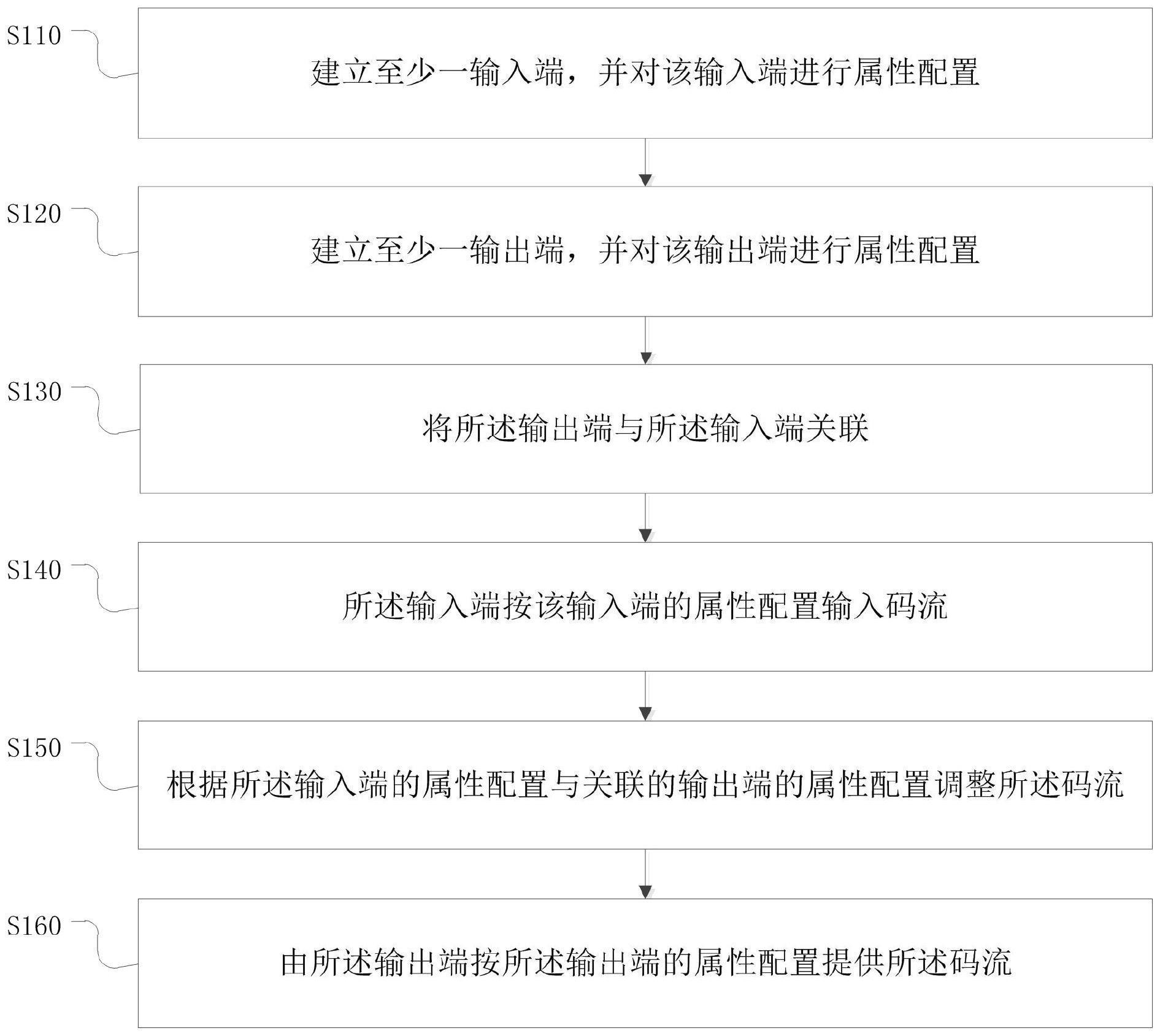 本发明提供一种码流中转方法、装置、电子设备及存储介质,码流中转方法包括:建立至少一输入端,并对该输入端进行属性配置;建立至少一输出端,并对该输出端进行属性配置;将所述输出端与所述输入端关联;所述输入端按该输入端的属性配置输入码流;根据所述输入端的属性配置与关联的输出端的属性配置调整所述码流;由所述输出端按所述输出端的属性配置提供所述码流。本发明通过码流中转的输入端和输出端的配置和码流转发以适应各种输入输出场景中,且输入端和输出端之间的处理方式对用户无感知,同时输入端和输出端易扩展,从而便于应用至更多的场景中。