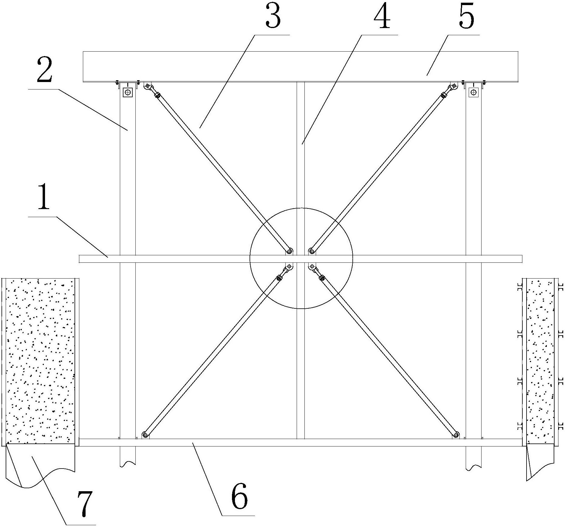 本实用新型公开了一种增加系统结构稳定性的可调架体结构,包括若干层操作平台,所述操作平台中相邻的操作平台之间均设置有拉紧杆,且拉紧杆的两端分别与对应的操作平台连接,其中相邻的操作平台之间均设置有竖向杆,竖向杆的两端分别与对应的操作平台固定,并且竖向杆设置在同一楼层中的拉紧杆之间。该结构通过设计多根能够进行调节的拉紧杆配合竖向杆作用,对顶升结构部件的受力进行合理的分配,从而增加系统结构的稳定性,减轻了结构自重,并有利于进行多次重复使用,极大地降低了成本。