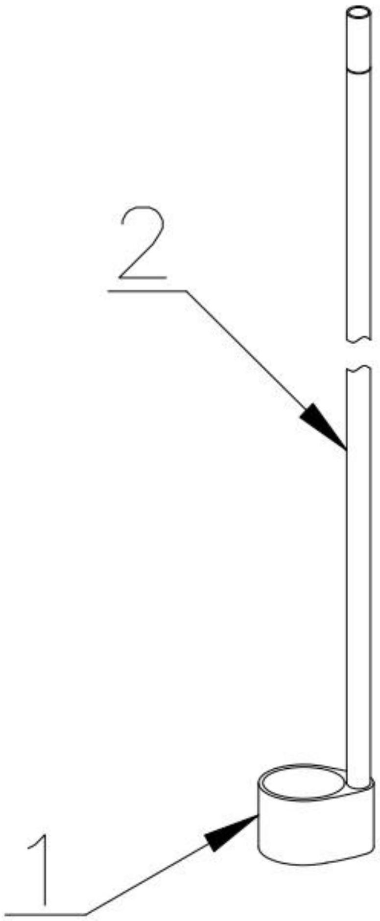 本实用新型公开一种灌注桩桩顶混凝土标高测量装置,包括铝制基座和测量杆,所述铝制基座为下端封闭的铝管,直径为8‑12cm,高度为8‑10cm,铝制基座的外壁连接座安装测量杆。本实用新型的灌注桩桩顶混凝土标高测量装置,通过“下端封闭的铝管且直径为8‑12cm,高度为8‑10cm”的铝制基座的结构设计,一方面减少泥浆浮力影响,一方面保证基座顺利穿过浮浆到达灌注混凝土顶部又不会在自重力作用下陷入混凝土内部,精准定位灌注混凝土顶部;同时通过基座连接的测量杆精确测量标高,测量精确度高,操作方便,制作成本低,适合推广应用。