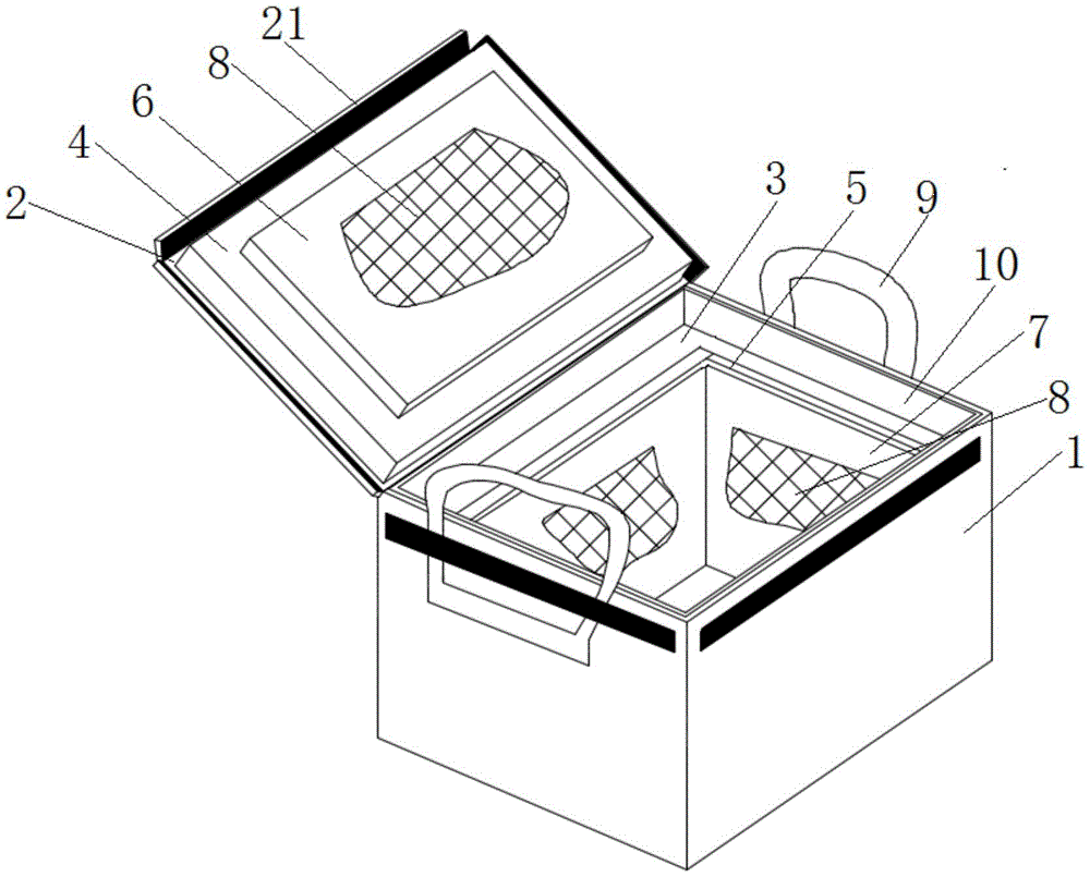 本实用新型公开了一种真空绝热保温箱,包括外箱体,外箱体的后侧面上端延伸有配合在外箱体上的外箱盖,外箱体内部固设有内胆箱,外箱盖内设有盖板,内胆箱包括底板和四块侧板,盖板、底板和四块侧板的内侧面均固设有真空保温复合板;真空保温复合板包括VIP真空绝热板和位于VIP真空绝热板两侧的第一XPS保温板、第二XPS保温板,第一XPS保温板相对于VIP真空绝热板四周水平向外沿出一圈裙边,VIP真空绝热板的四周侧面设有一圈XPS保温块,XPS保温块的宽度与上述的裙边的宽度相对应,XPS保温块的高度等于第二XPS保温板和VIP真空绝热板的厚度之和。本实用新型保温性能好,密封性能好,隔热效果好。