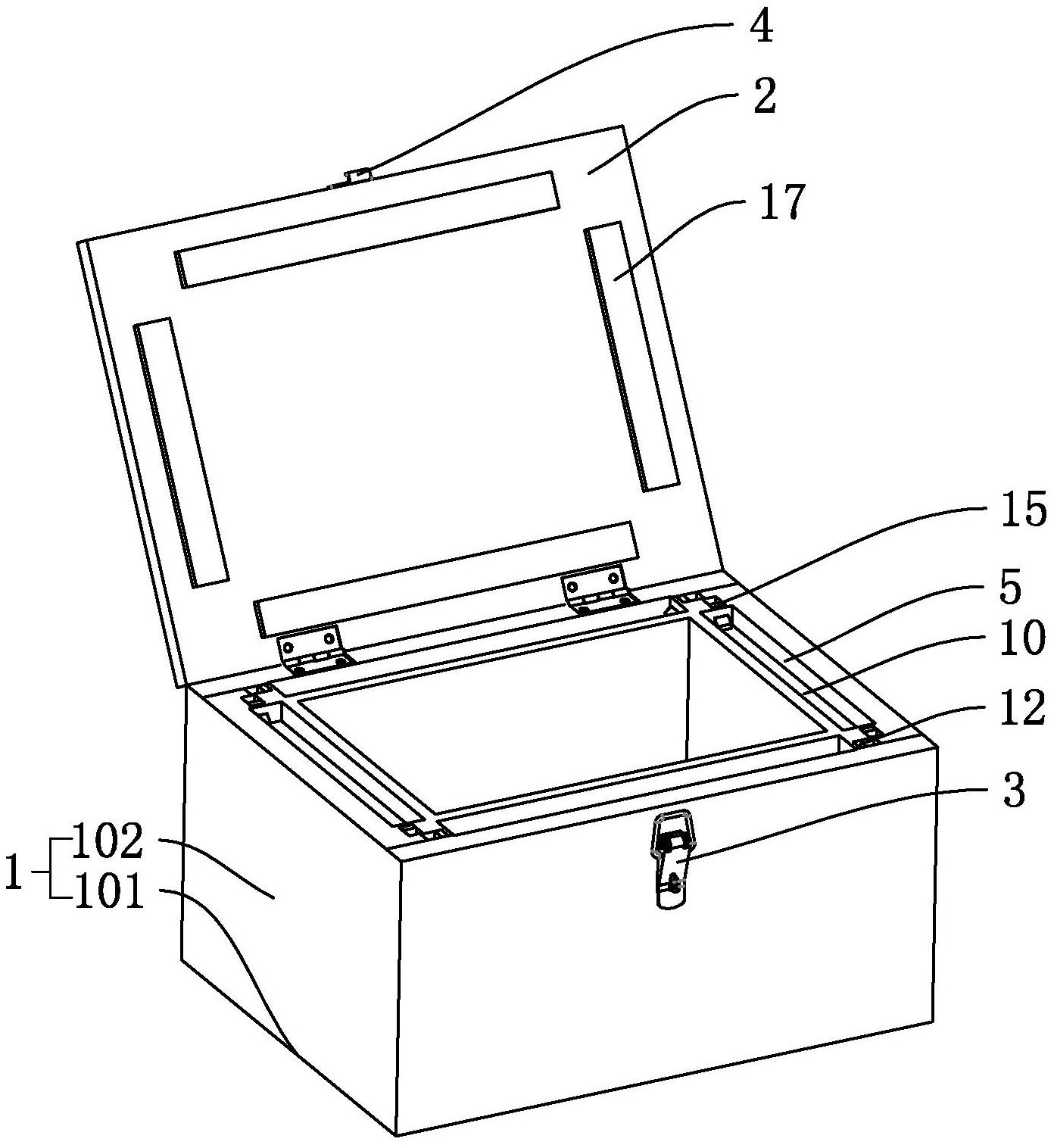 本实用新型涉及冷链运输的技术领域,尤其是涉及一种冷链运输箱,其包括箱体和箱盖,箱体顶部开口,箱盖用于启闭箱体顶部开口,箱体上设置有对箱盖上锁或解锁的锁合组件,箱体包括底板和与底板垂直且首尾相固定连接的四个侧板,侧板远离底板的端面均开设有容置槽,容置槽内均容置有若干储冷冰盒。本实用新型具有对食品类物品降温处理时,不易对食品类物品造成污染,且运输箱能够循环利用,从而实现节能环保的效果。