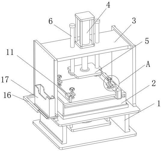 本实用新型提供一种服装包装袋生产线用印刷装置,涉及服装包装袋加工技术领域,包括基板,所述基板的顶面固装有加工台,所述加工台的顶部固定安装有支撑架,所述支撑架的顶面固装有气缸,所述气缸的输出端固定连接有油墨印面,所述加工台的底部固装有电机,所述电机的输出端固定连接有齿轮,所述加工台的内部滑动连接有齿条,所述齿条的一侧固定连接有限位板,实际使用时,通过设置基板、加工台、支撑架、气缸、油墨印面、电机、齿轮、齿条、限位板、固定座、滑动座、螺纹杆和压板,方便人们对不同大小的包装袋进行固定,使人们能够同时对不同规格的包装袋同时进行印刷,操作简单便捷,利于实际使用。